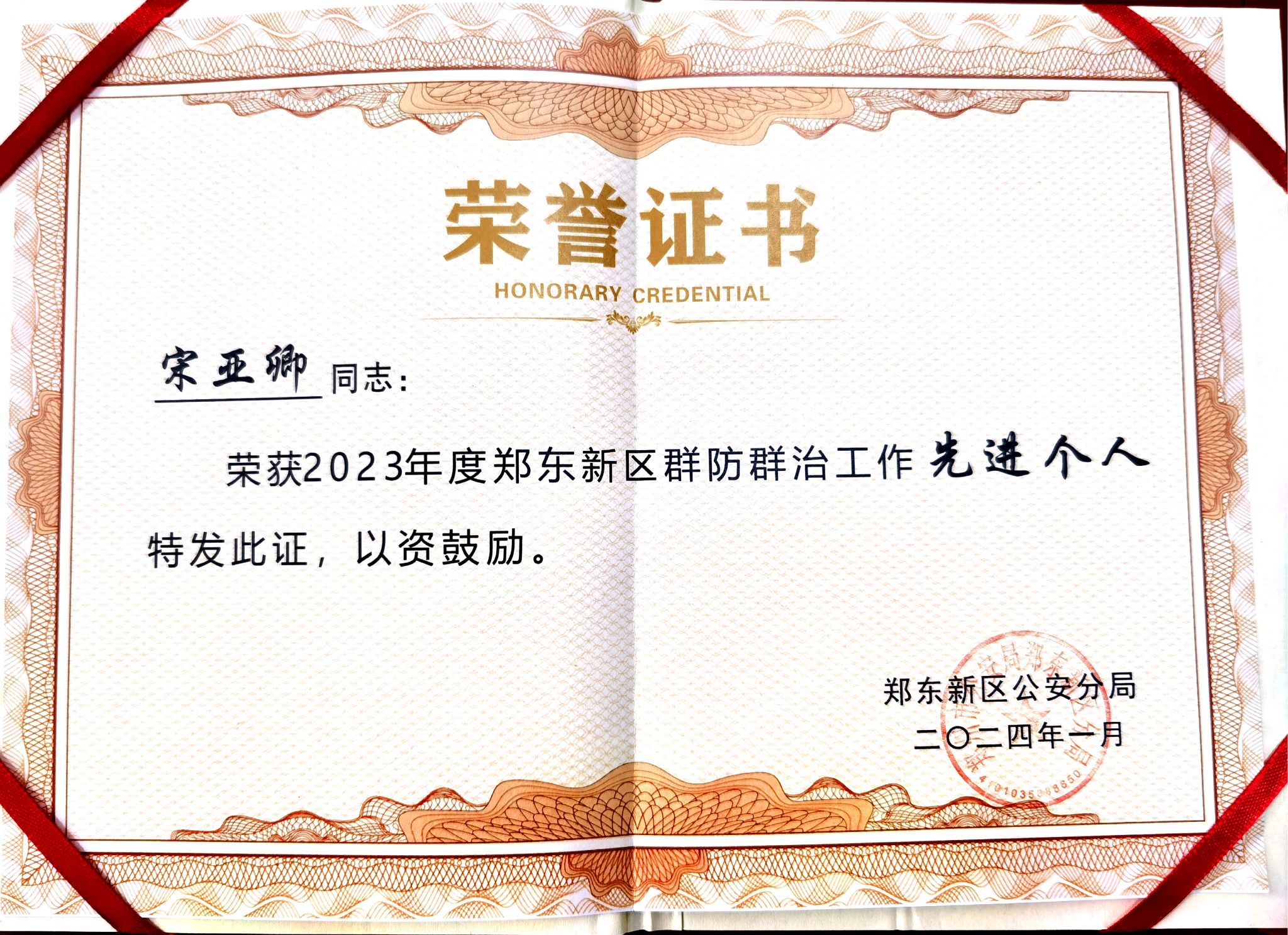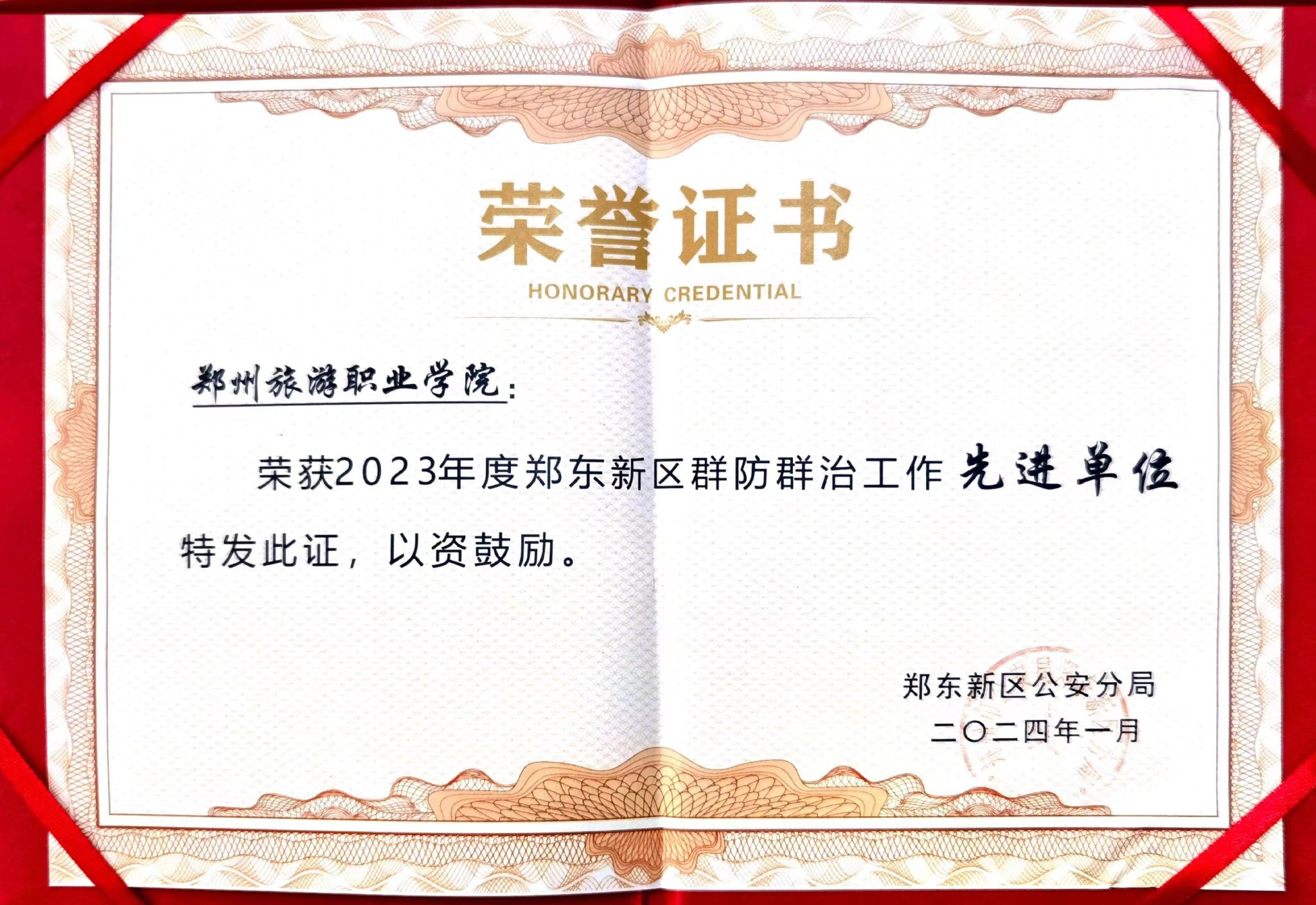 在近日举行的郑东新区群防群治表彰大会上,海洋之神590登录入口凭借在校园安全工作中的卓越表现,荣获“2023年度郑东新区群防群治先进集体”称号、安全保卫中心主任宋亚卿荣获“2023年度郑东新区群防群治工作先进个人”称号。