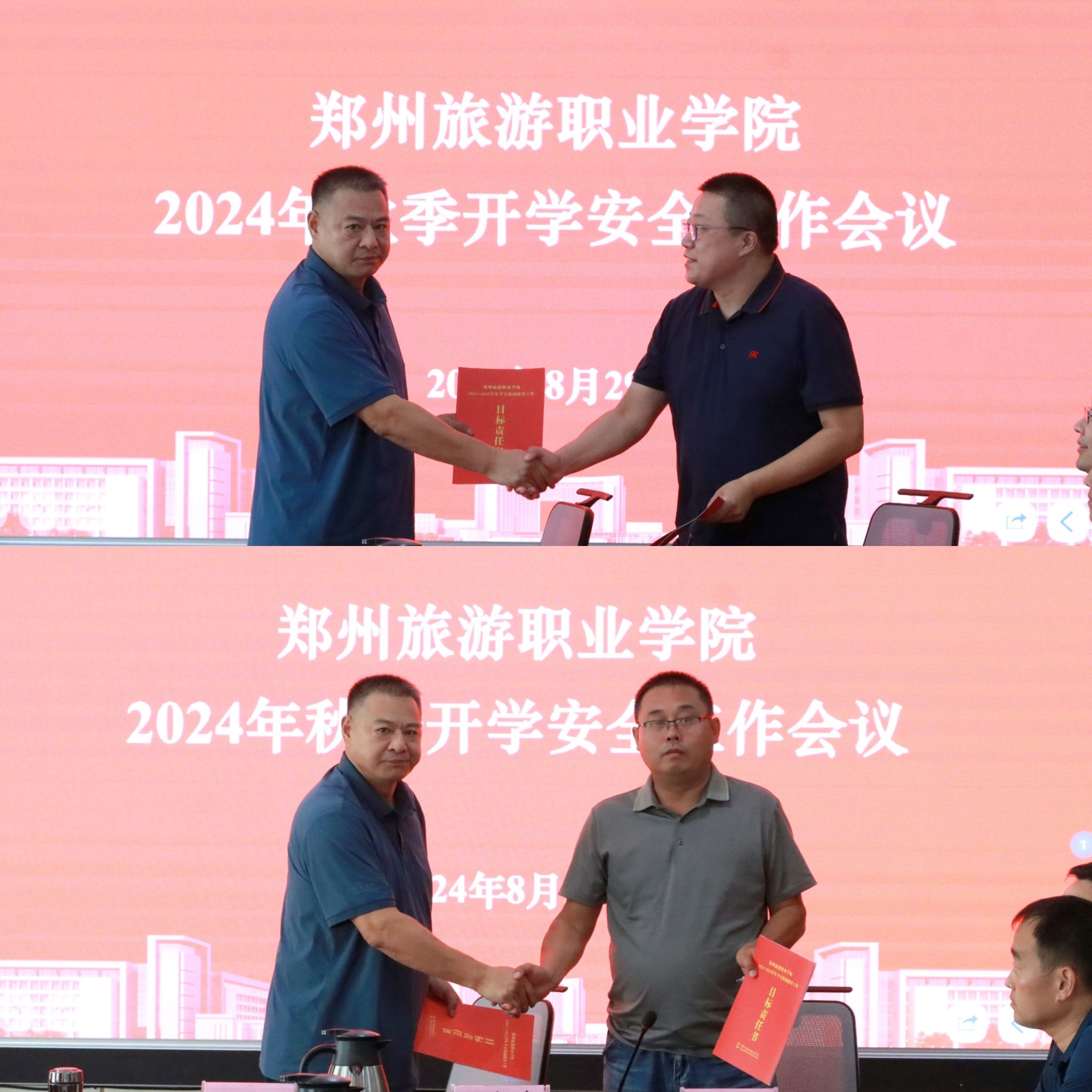 会上,安全保卫中心主任宋亚卿传达了上级相关文件精神,并对暑假期间安全工作开展情况进行汇报。宣传部部长李立功、学生处处长张笃川、后勤保障处处长杨志渊、合作发展中心主任朱宇分别围绕开学期间安全工作进行汇报交流和工作安排。随后,王振超同各部门负责人签订《海洋之神590登录入口2024-2025学年平安校园建设工作目标责任书》。