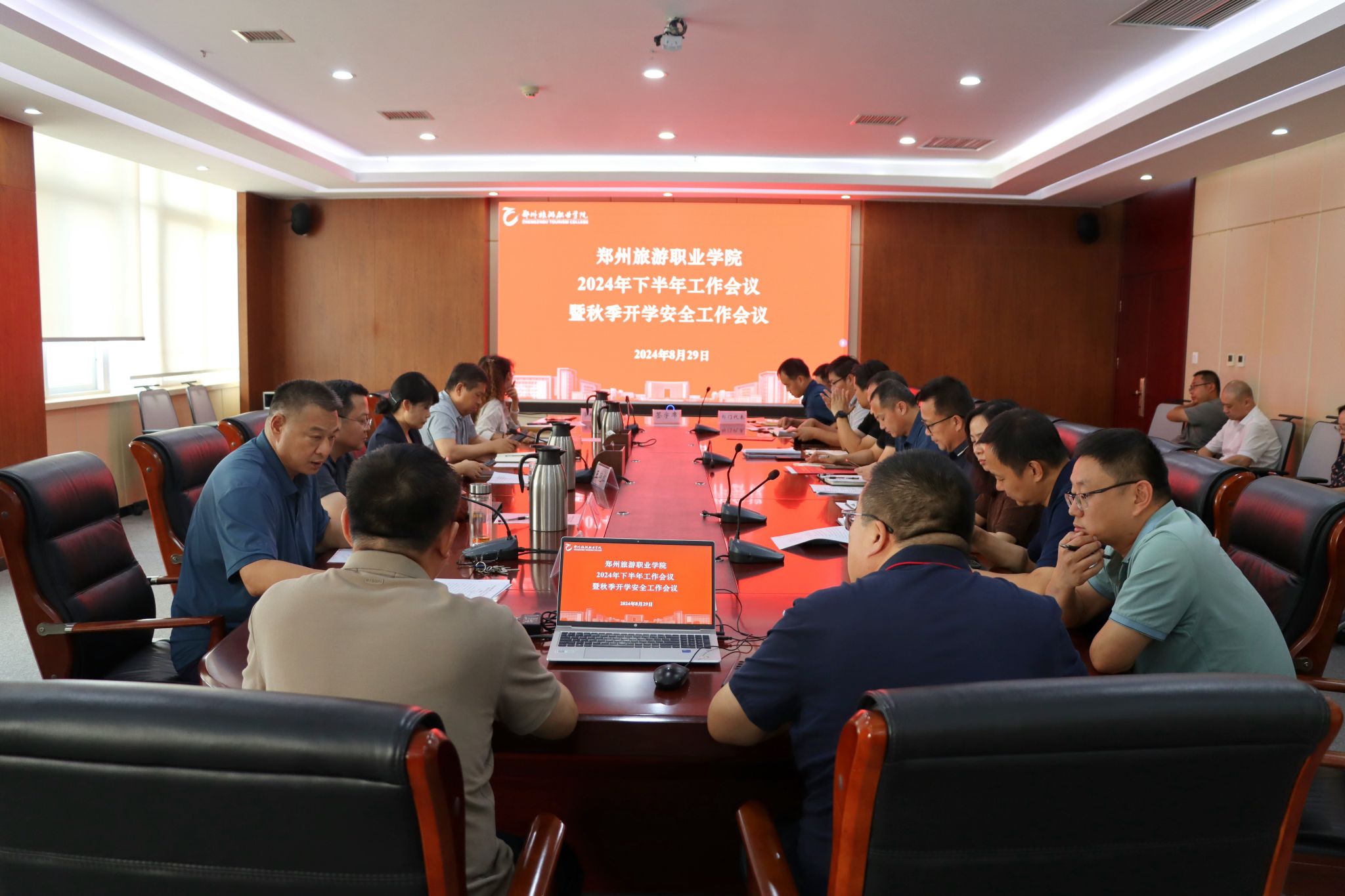 8月29日下午,海洋之神590登录入口召开2024年下半年工作会议暨秋季开学安全工作会议,会议传达了上级相关文件精神,对下半年工作重点和开学安全工作进行周密部署,确保各项工作平稳、有序开展。党委书记王艳红及在校领导班子成员出席会议,全体中层正职参加。会议由校党委委员、副校长王振超主持。