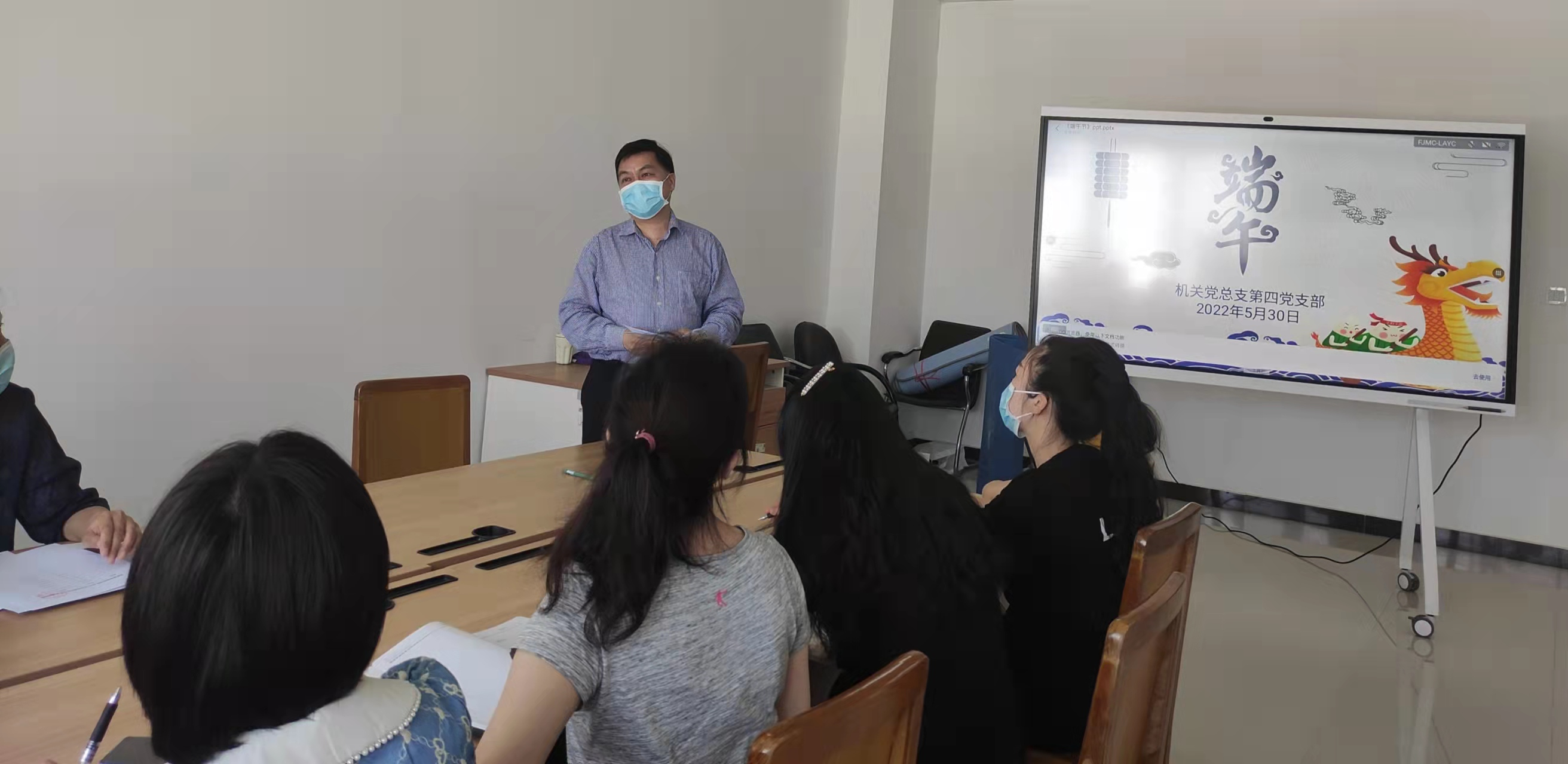 根据《关于持续开展2022年“我们的节日”主题活动的通知》(郑文明办[2022]4号)要求,在传统佳节“端午节”来临之际,为进一步弘扬传统文化,加强对传统文化的理解和认识,坚定文化自信,5月30日上午,机关党总支第四党支部在行政楼701室开展“一路粽有你,共话传统端午佳节”党日活动。第四党支部全体党员,财务处和科研外研事处部分干部参加活动。