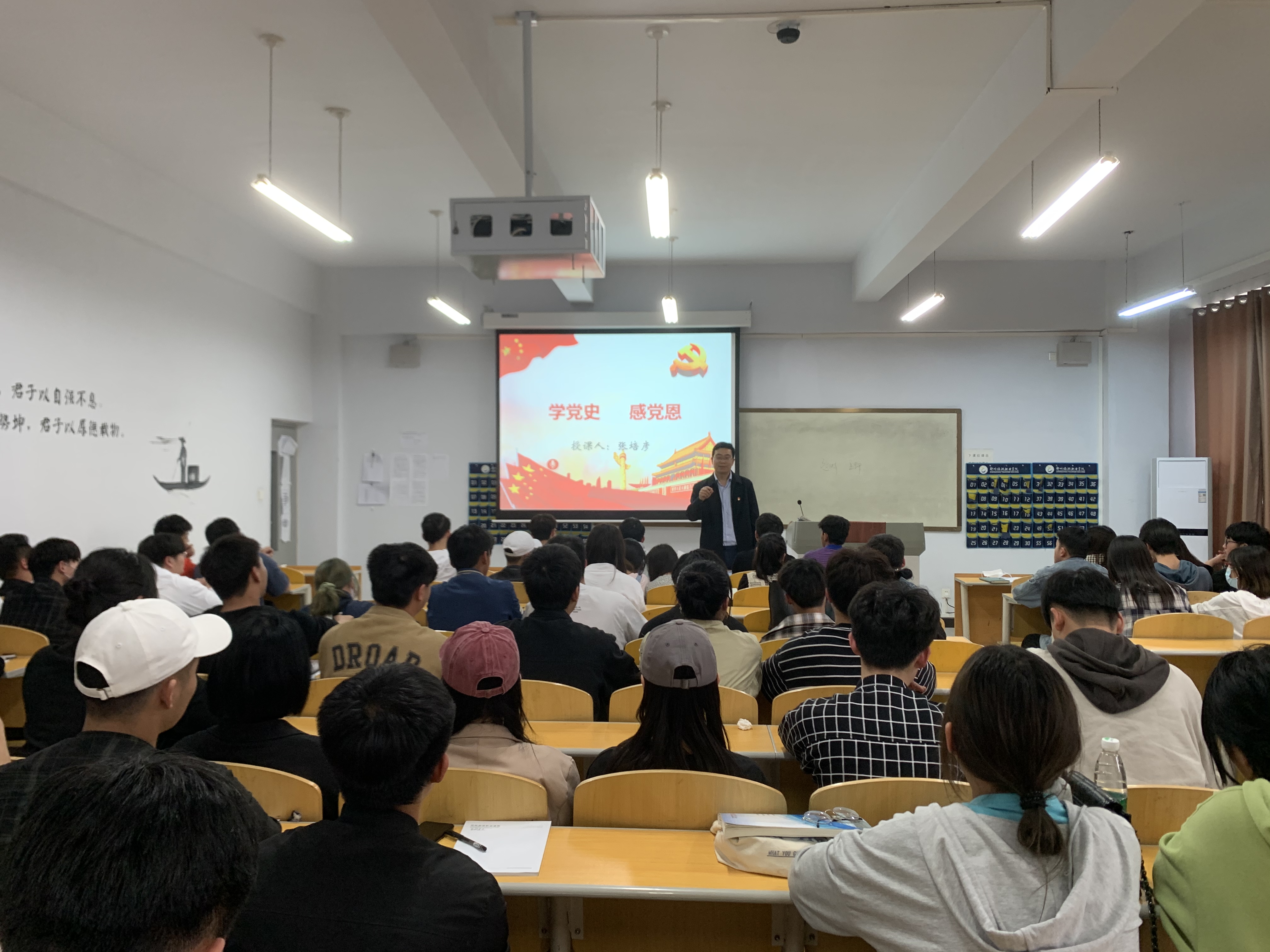 为贯彻落实习近平总书记在党史学习教育动员大会上的重要讲话精神,引导广大青年学生学史明理、学史增信、学史崇德、学史力行,推动党史学习教育进课堂、进基层、进头脑,4月15日下午,机电工程学院在1A509开展党史学习教育专题党课,学院党总支书记张培彦以“学党史、感党恩”为主题为青年学生讲授党史学习教育专题党课,学院团学干部、各班班长、团支书及学生代表参加党课学习。
