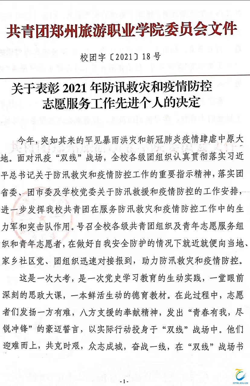 这是一次大考,是一次党史学习教育的生动实践,一堂眼前深刻的思政大课,一本鲜活生动的德育教材。在此过程中,志愿者们发扬一方有难,八方支援的奉献精神,发出“青春有我,尽锐冲锋”的豪迈誓言,以实际行动投身于“双线”战场中。他们迎难而上,共克时艰,众志成城,奋战一线,在“双线”战场书写了感人的汛疫故事,谱写了美丽的青春画卷,彰显了新时代大学生的的责任感和使命感, 厚植了爱党爱国主义情怀。为表彰先进、树立典型,经研究,决定授予李江帆等32名学生志愿服务“突出贡献奖”荣誉称号,授予张阳琳等120名学生志愿服务“先进个人”荣誉称号。