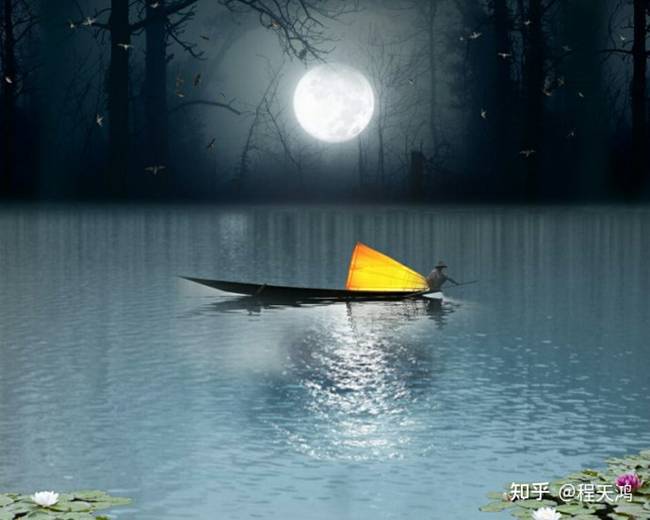 点评:碧空万里,水波不兴,月照湖面,寰宇澄澈。泛舟湖上,以长江之水为酒,把北斗星当酒杯,再请天上的星辰万象作为宾客来,和我一起细斟慢酌。此情此境,没有天地物我,不知今夕何夕。这种壮阔、这种豪情,遍观宋词,无以复加。
