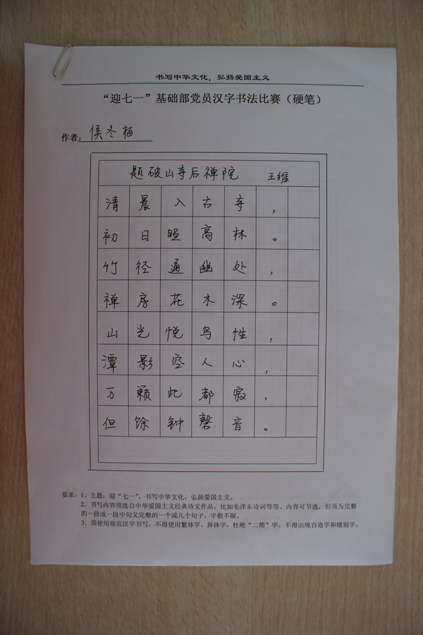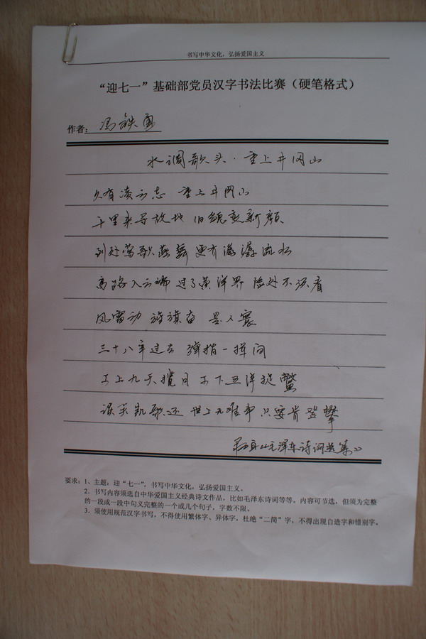 在“七一”到来之际,基础部党支部在广大党员的倡议下,组织了书法比赛活动,并取得了圆满成功。