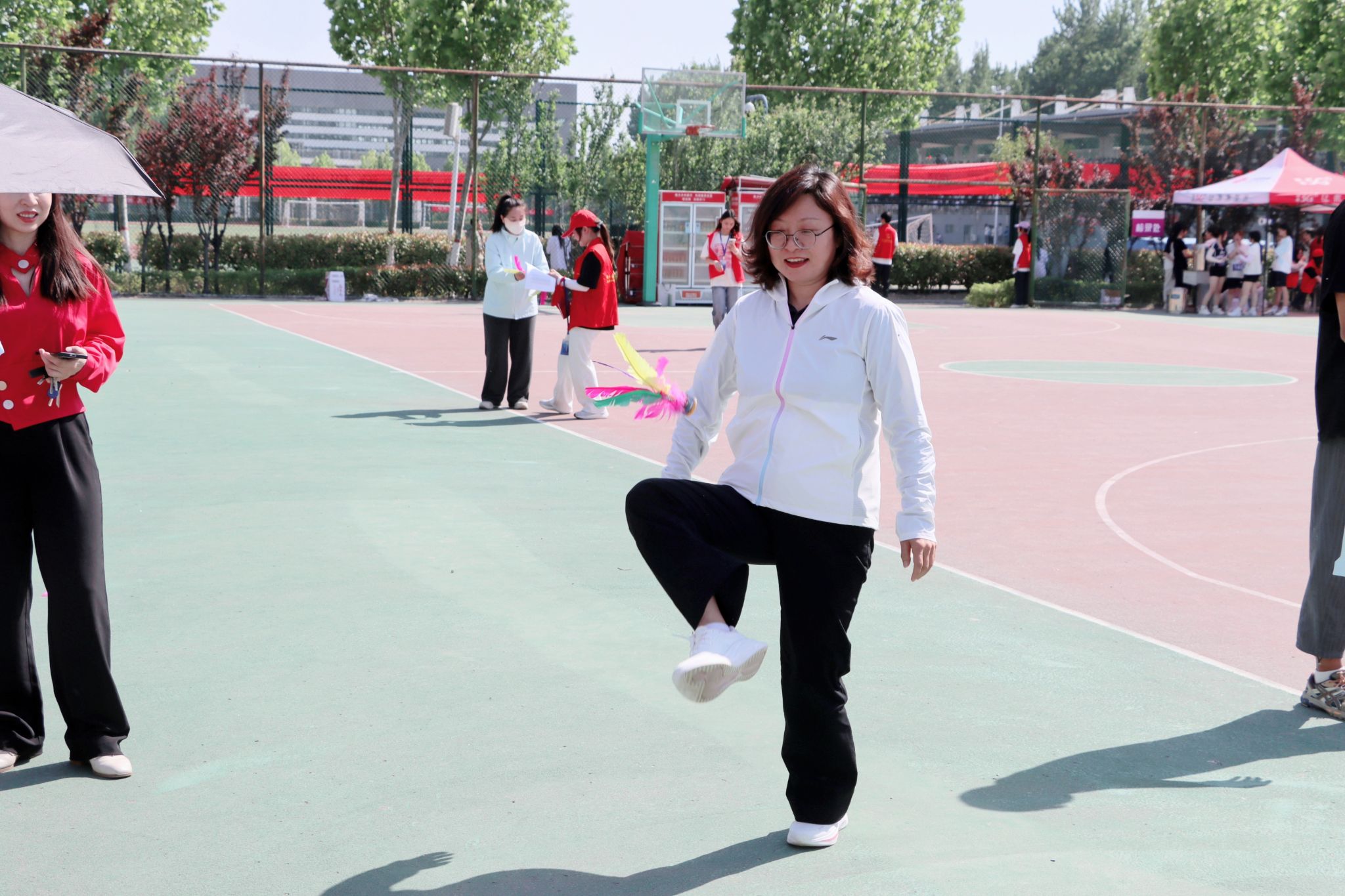 个人项目同样精彩纷呈。定点投篮赛场上,男教师们个个精神抖擞,调整姿势、瞄准篮筐、果断出手,动作一气呵成;踢毽子比赛区域,女教师们身姿轻盈,五彩的毽子在她们脚下上下翻飞,展现出别样的风采。