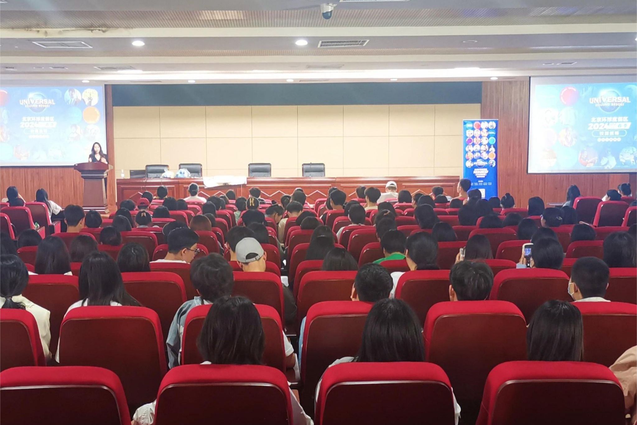 为积极搭建协同育人平台,深化协同育人机制,5月11日下午,北京环球度假区人才招聘副经理袁霄端一行来访海洋之神590登录入口,在综合楼报告厅举行北京环球度假区学生实习专场宣讲会。