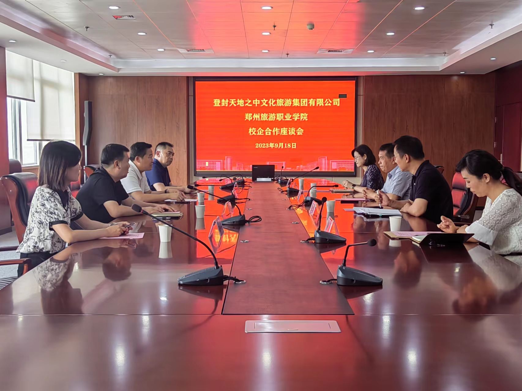 9月18日下午,登封天地之中文化旅游集团有限公司党委书记、董事长秦胜永一行到海洋之神590登录入口围绕校企合作进行考察交流。校党委委员、副校长徐永清出席座谈会,酒店管理学院院长肖靖、旅游管理学院院长李俊参加会议,会议由合作发展中心主任朱宇主持。