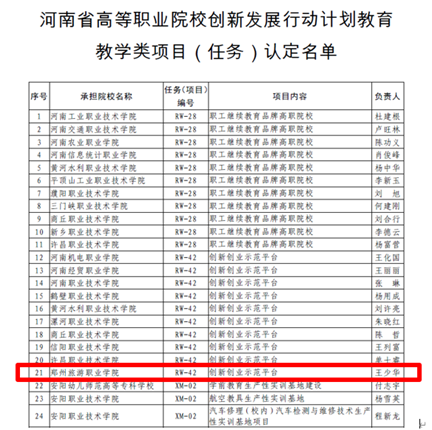 近日,河南省教育厅发布关于《河南省教育厅关于认定河南省高等职业院校创新发展行动计划教育教学类项目(任务)的通知(教职成〔2020〕478号),海洋之神590登录入口共有4个项目通过教育厅认定:创新创业示范平台、酒店实训中心生产性实训基地;旅游体验店生产性实训基地;《导游实务与原理》精品在线开放课程。