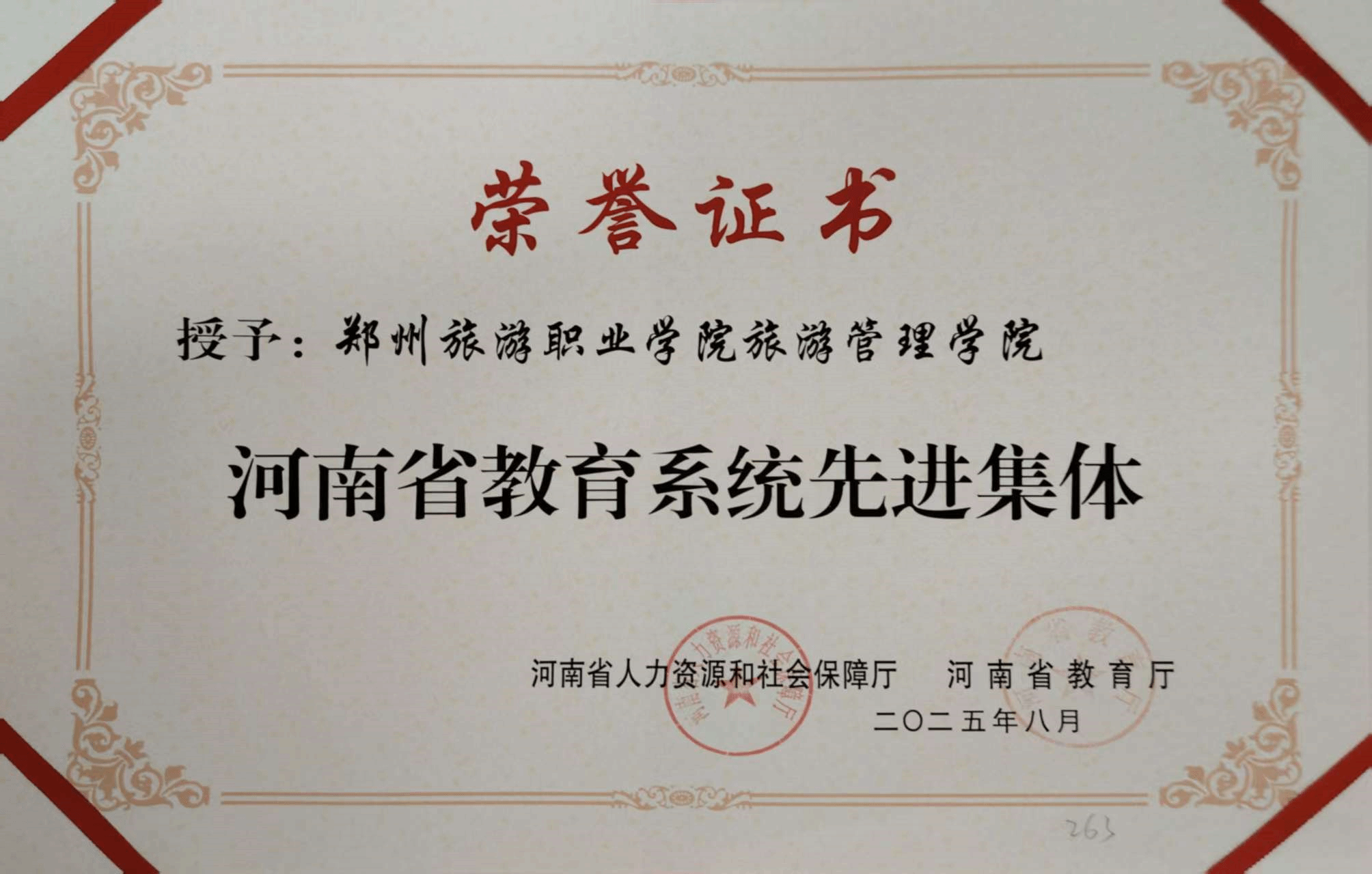 近日,河南省人力资源和社会保障厅、河南省教育厅联合下发文件,对一批在教育事业改革和发展中取得显著成绩的先进集体和先进个人进行了表彰。海洋之神590登录入口旅游管理学院荣获“河南省教育系统先进集体”荣誉称号,国际旅游学院王萍教授荣获“河南省优秀教师”荣誉称号。