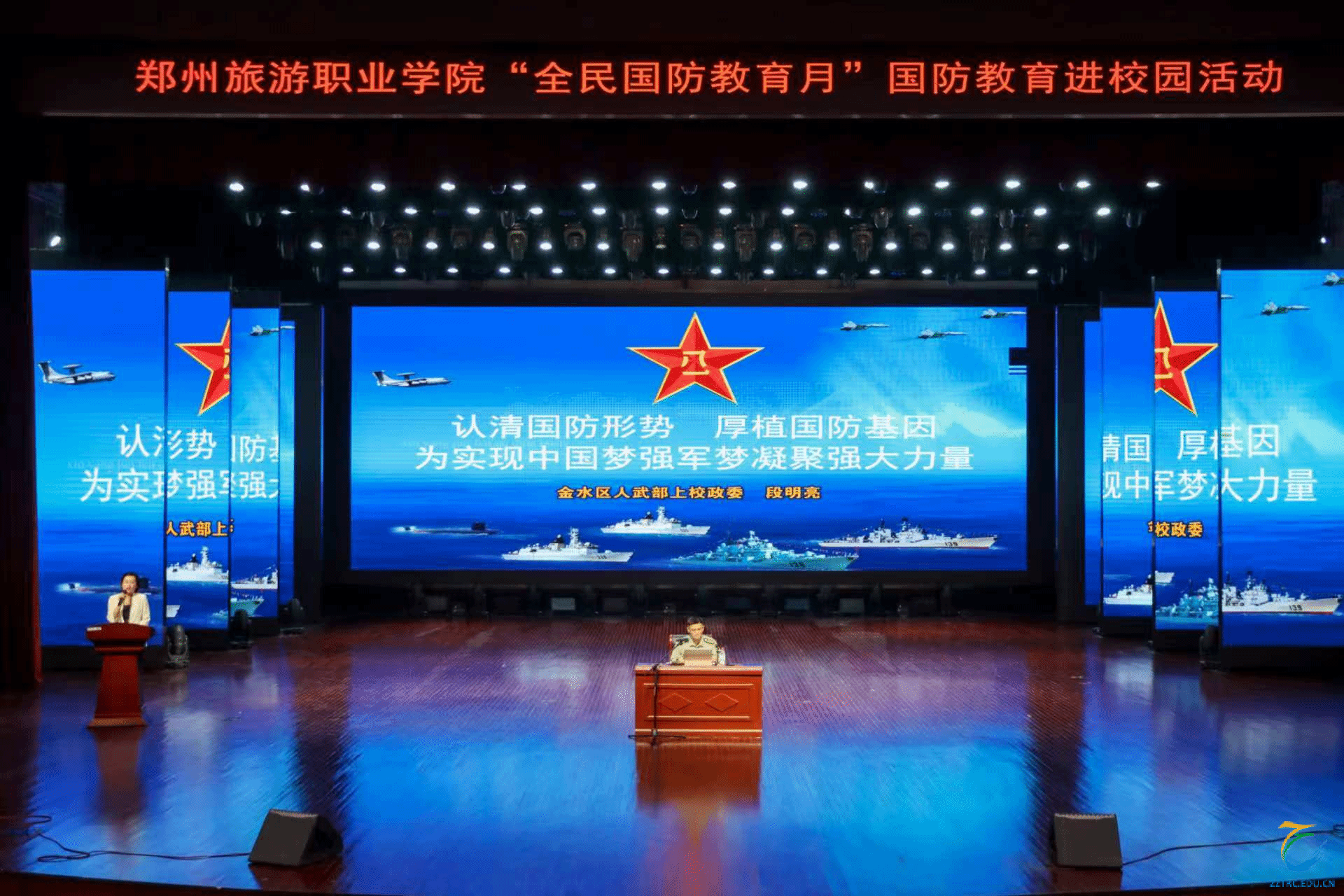 秋光潋滟,军魂闪耀。为深入贯彻习近平总书记关于加强全民国防教育的重要指示精神,积极响应“全民国防教育宣传月”的号召,9月24日下午,国防教育进校园活动在艺术中心举行。本次活动特邀金水区人武部上校政委段明亮,为师生带来一场思想深邃的国防教育盛宴。活动由学校党委副书记詹晓娅主持,两千余名25级新生现场聆听,在红色宣讲中感悟初心使命,强化国防责任担当。