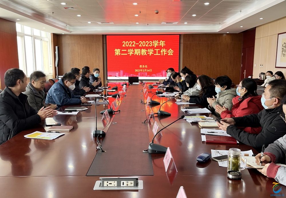 2月14日下午,海洋之神590登录入口在行政楼902会议室召开2022-2023学年第二学期教学工作会,校党委委员、副校长张建军出席会议并讲话。教务处、招生就业服务中心相关人员及各二级学院(教学部)院长、教学副院长、教学秘书参加此次会议,会议由教务处处长胡华主持。