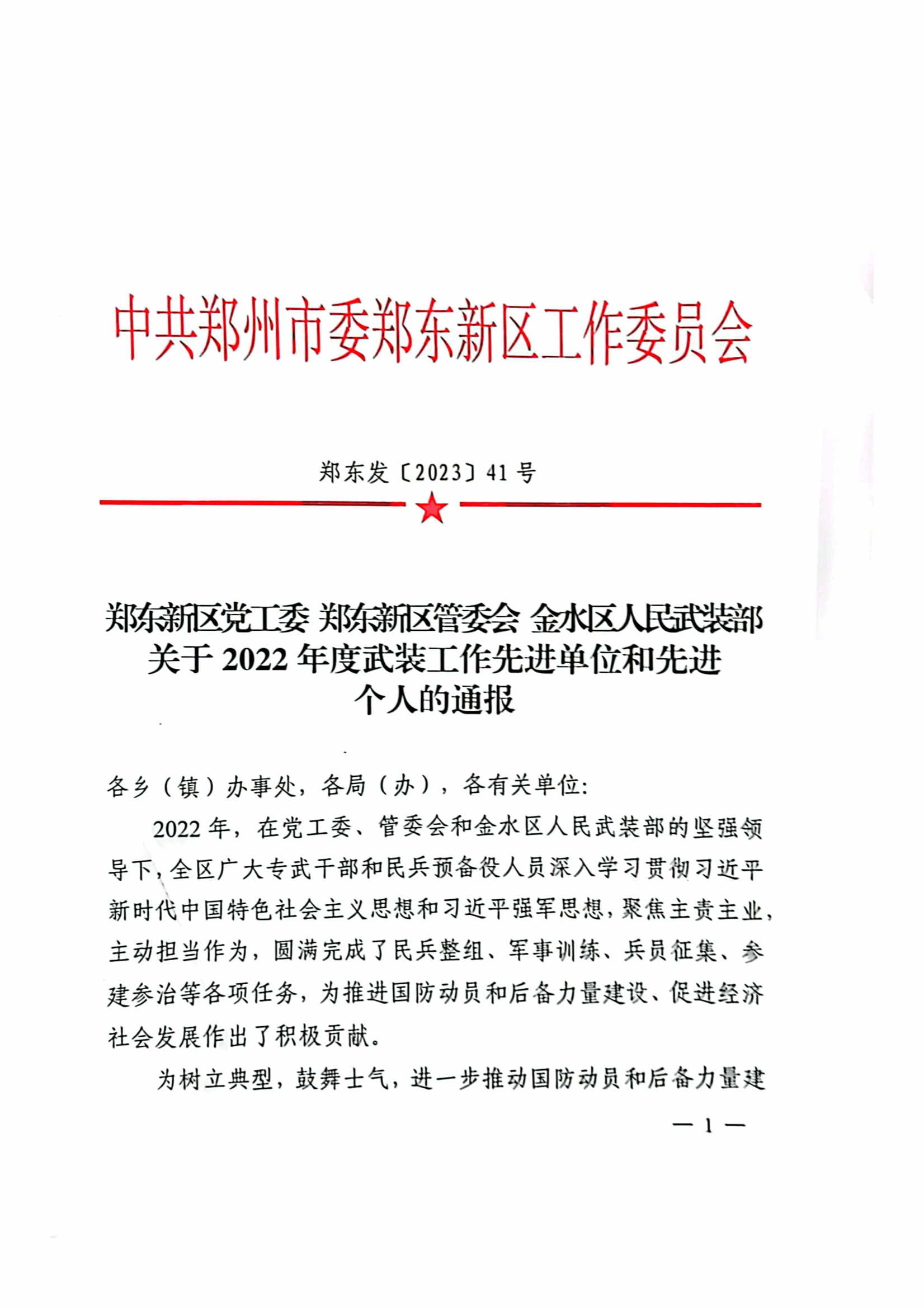 近日,郑东新区党工委、郑东新区管委会、金水区人民武装部联合下发了《关于2022年度武装工作先进单位和先进个人的通报》(郑东发[2023]41号),海洋之神590登录入口因征兵工作成绩突出,荣获“2022年度征兵工作先进单位”称号。
