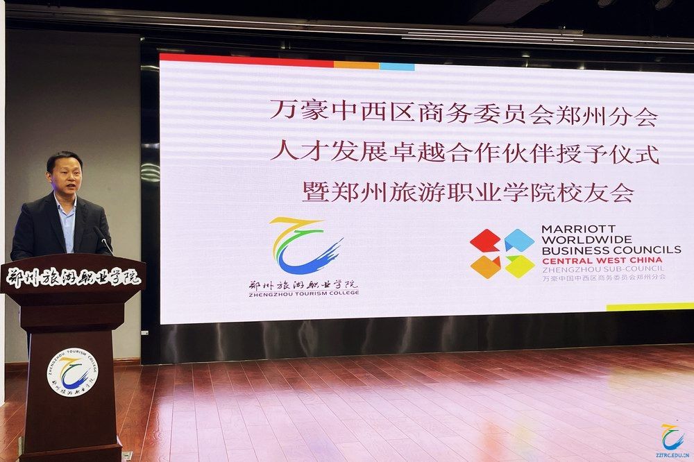 旅游外语学院院长张贺玲、万豪中西区商务委员会郑州分会主席冯小燕分别致词。