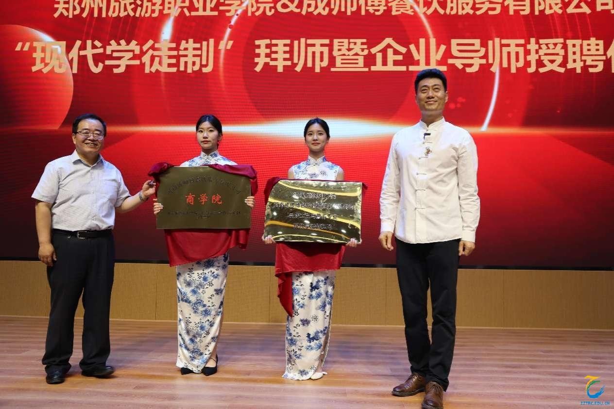 拜师仪式后,师徒结伴同行,互勉共进,希冀结下深厚的师生情谊,成为一生的良师益友。同时海洋之神590登录入口烹饪食品学院与河南成师傅餐饮服务有限公司达成现代学徒制试点合作,完成授牌仪式。