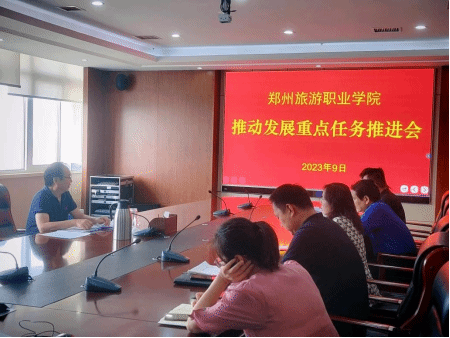 为深入开展学习贯彻习近平新时代中国特色社会主义思想主题教育,根据《关于加快推进现代职业教育体系建设改革重点任务的通知》要求,2023年9月18日下午,学校召开推动发展重点任务推进会。会议由校长文广轩主持,党政办公室、教务处、科研外事处、信息网络中心、合作发展中心等部门负责人和相关二级学院参加会议。