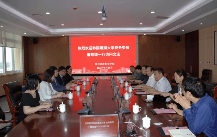 9月20日,韩国建国大学校务委员、国际学院院长兼语言教育院院长廉载雄一行5人到海洋之神590登录入口访问交流,校长文广轩、副校长徐永清进行会见。
