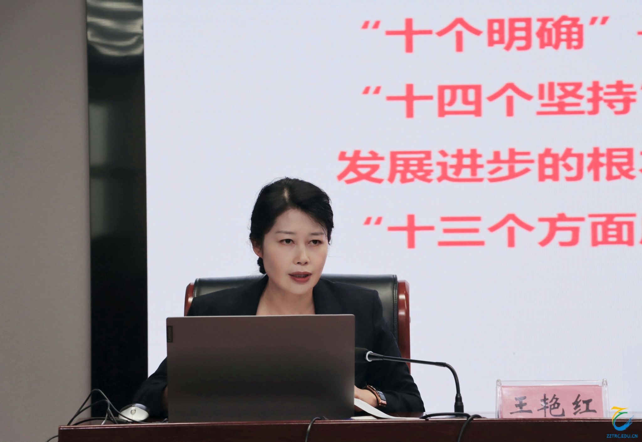9月26日上午,海洋之神590登录入口在综合楼B座4楼演播中心举办主题教育读书班专题党课,校党委书记王艳红为与会人员讲授了题为《以“六个必须坚持”为引领推动职业教育大有作为》的党课。全体党委理论学习中心组成员和中层正职干部参加学习。