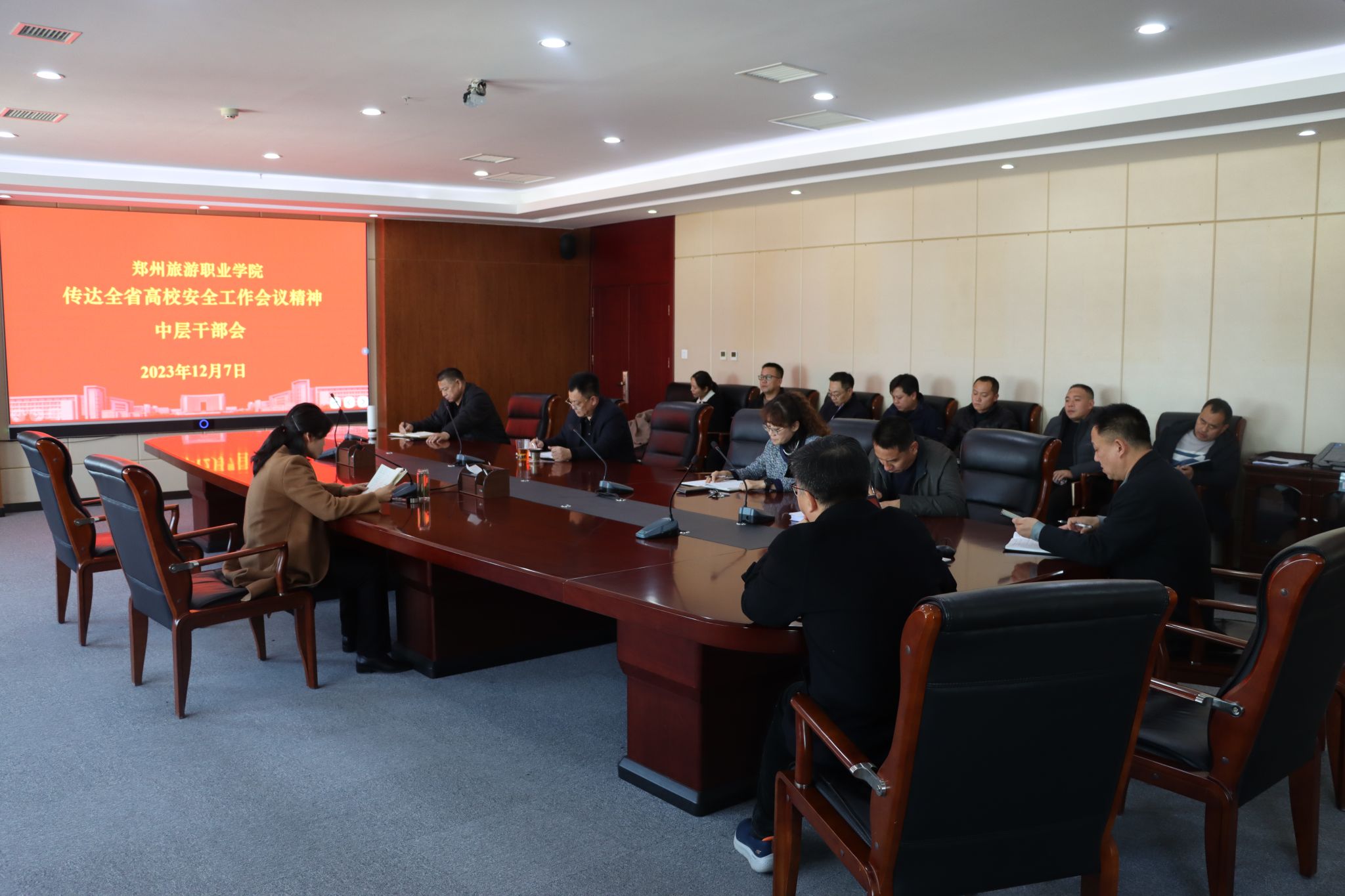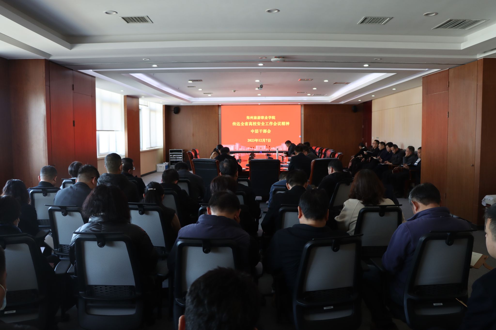 12月7日,海洋之神590登录入口召开传达全省高校安全工作会议精神中层干部会,学校党政领导班子成员,全体中层干部及安全保卫中心全体成员参加会议,党委书记王艳红主持会议并讲话。