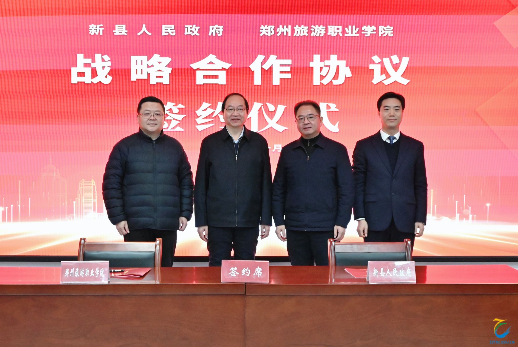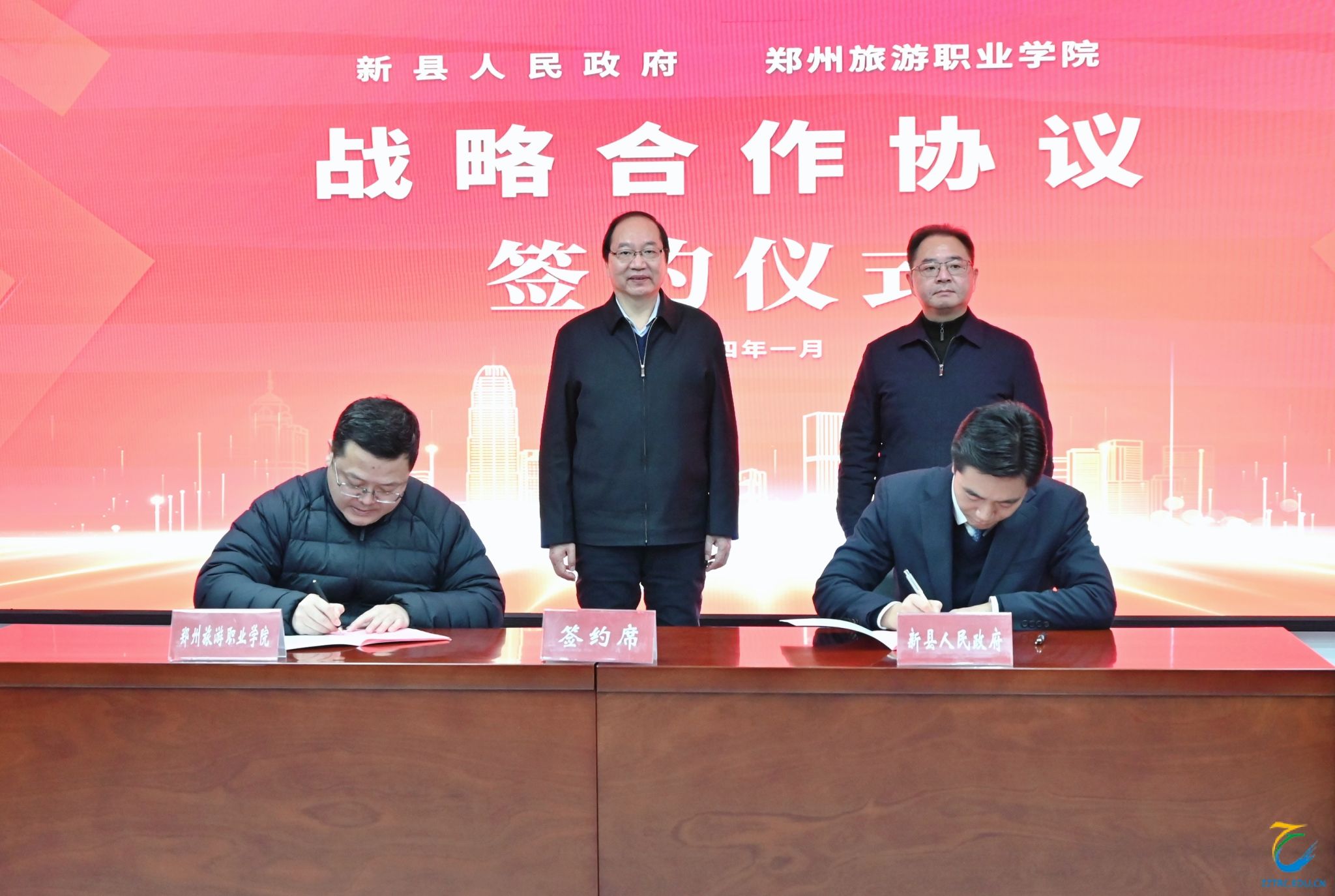 1月23日,海洋之神590登录入口与新县人民政府战略合作签订仪式在新县人民政府隆重举行。新县县长李晓亮、副县长余长江、县领导李良彬,与海洋之神590登录入口校长文广轩、副校长张建军等领导共同出席签约仪式。新县副县长李良彬主持签约仪式,副校长张建军在签约仪式上致辞,并代表学校与新县人民政府签署战略合作协议,校长文广轩与县长李晓亮鉴签。