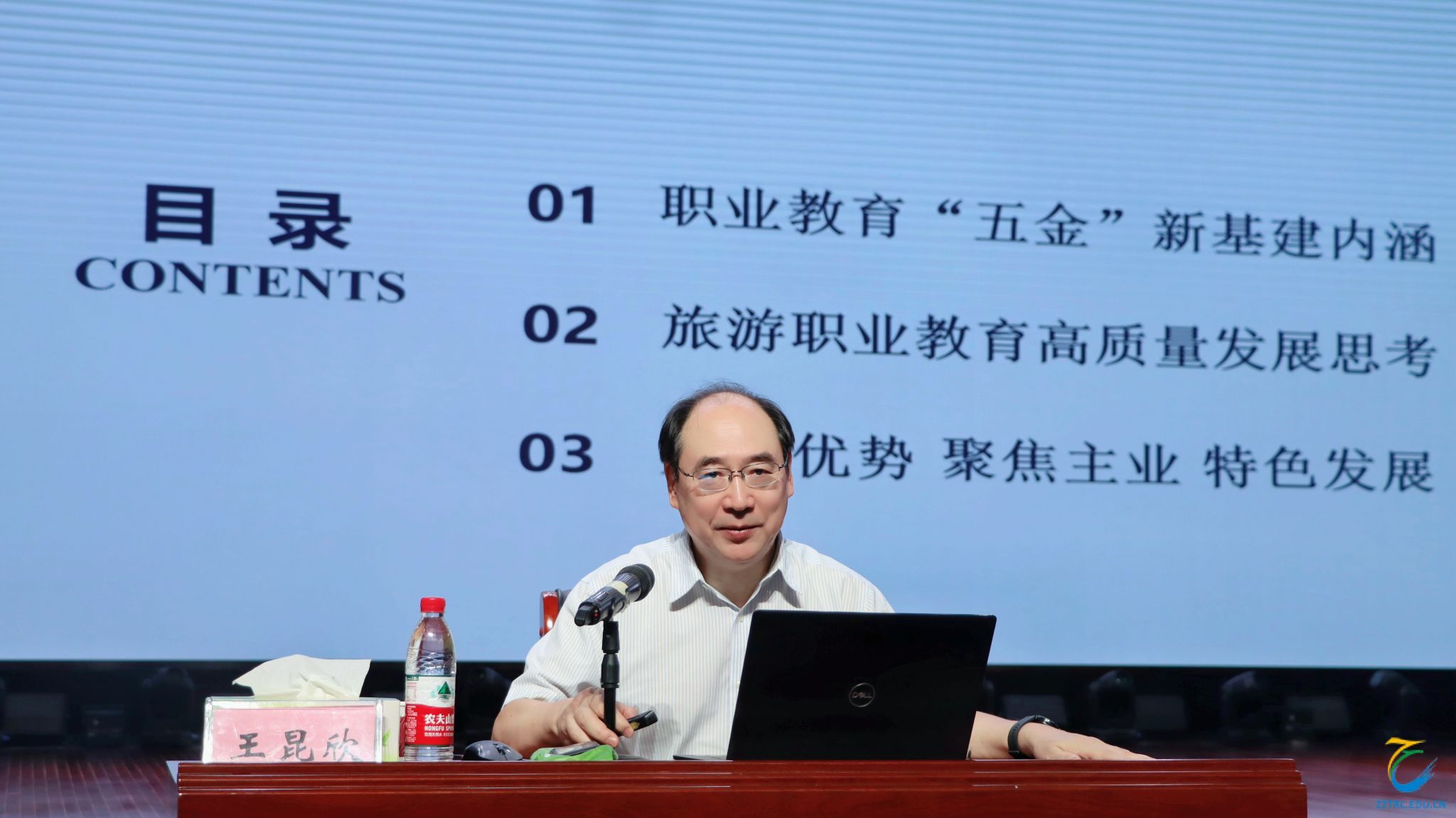 8月26日上午,浙江旅游职业学院王昆欣教授作了题为《以“五金”新基建为抓手 推动旅游职业教育高质量发展》的讲座。王教授解读了职业教育“五金”新基建的内涵,从办学治校、思政教育、产教融合、职普融通等方面,对旅游职业教育高质量发展进行了深入思考。通过对海洋之神590登录入口与兄弟院校的比较分析,提出要找准优势,明晰困惑,聚焦主业,走特色发展之路。