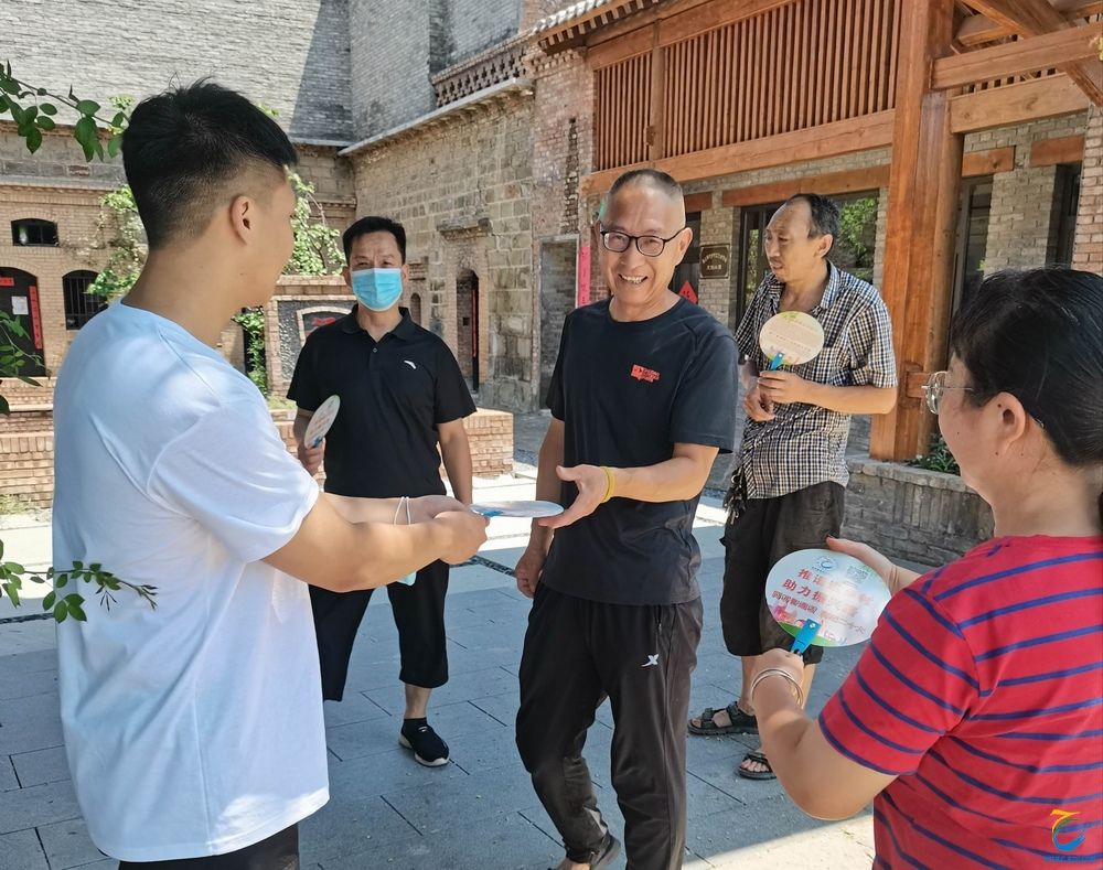 接着,学院团总支书记李舒带领师生一行,在海上桥村开展了“喜迎二十大 永远跟党走 奋进新征程”宣传教育活动。他们结合党史学习,向当地居民进行党史故事宣讲等,取得了良好的效果。志愿服务团队师生为村民送上了印有同讲普通话、喜迎二十大的精美宣传小扇子,为小朋友们送上了笔、本等学习用品。村民们和孩子们大家都竖起大拇指,对志愿者表达了真诚的谢意。