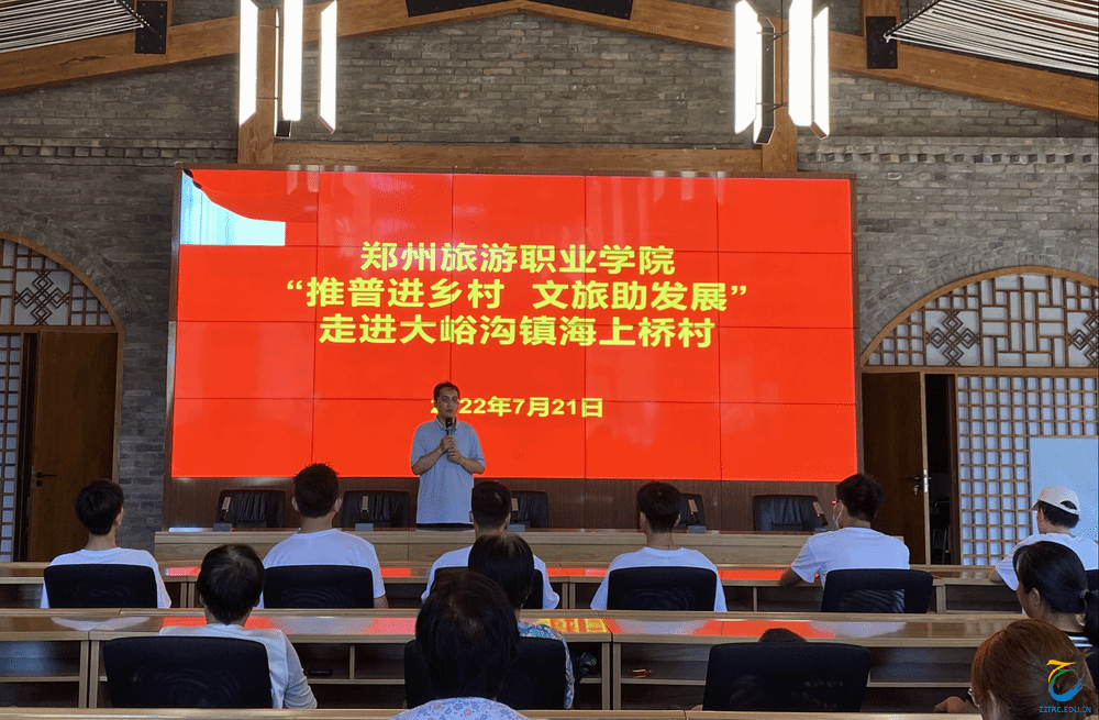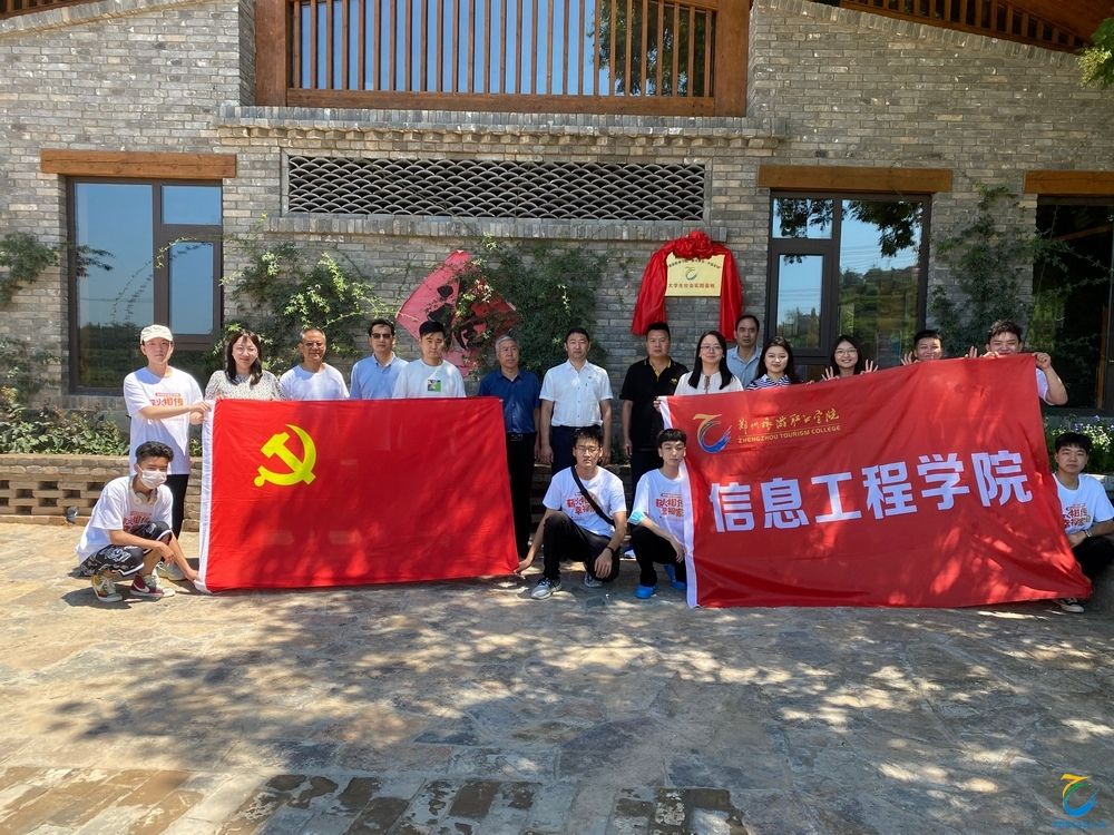 为深入学习宣传贯彻习近平新时代中国特色社会主义思想,贯彻落实习近平总书记在庆祝中国共产主义青年团成立100周年大会上的重要讲话精神,引导和帮助广大青年学生上好“大思政课”,加强海洋之神590登录入口与巩义市大峪沟镇的交流与合作,构建教育发展共同体,海洋之神590登录入口 “薪火乡传•幸福家园”乡村振兴志愿服务团于2022年7月21日,由信息工程学院党总支书记刘兆坤、校组织部副部长李威、信息工程学院团总支书记李舒、基础教研室主任张洁带领信息工程学院教师及学生一行前往巩义市大峪沟镇海上桥村举行“大学生社会实践基地”揭牌仪式并开展“推普进乡村 文旅助发展”大学生社会实践志愿服务活动。