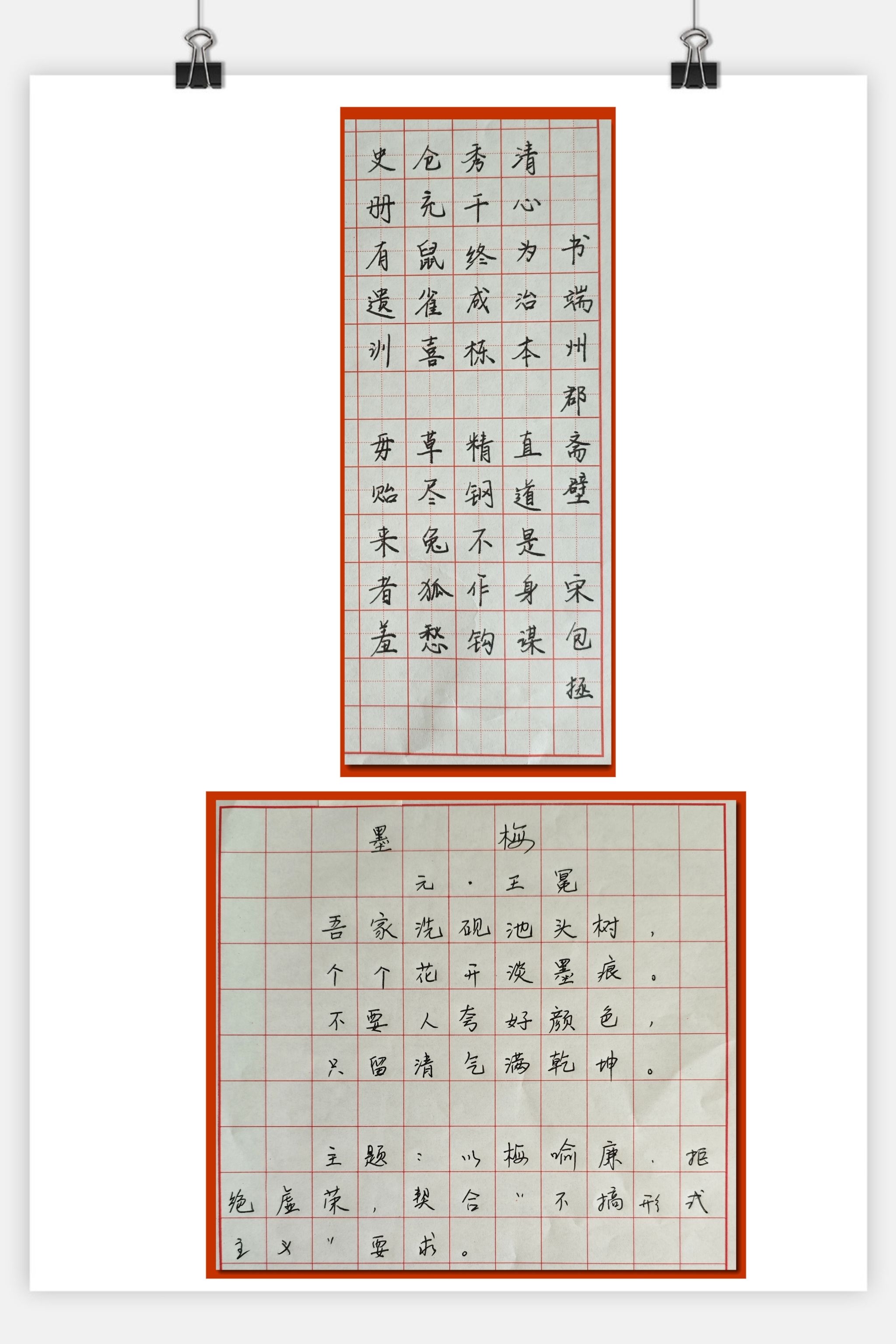 此次比赛创新地将教师教学基本功锤炼与廉洁教育深度融合,紧扣时代脉搏,要求参赛作品紧扣廉洁主题或取材廉政经典。比赛现场,老师们执笔为剑,以墨传心,在横竖撇捺间书写清廉誓言。有的教师挥笔写下《诗经・硕鼠》,借古人之笔对贪腐现象进行辛辣讽刺;有的则摘录于谦《石灰吟》中 “要留清白在人间”的千古名句,彰显坚守清廉的铮铮铁骨;有的教师书写郑板桥 “一枝一叶总关情”,传递深厚的民本情怀。此外,还有精心摘录党的作风建设相关要求的作品,字字工整、笔笔端正,方寸间承载的是对廉洁文化的深刻理解与艺术表达。为确保公平公正,评委组围绕“主题契合度”“书法功底”“创意表达”三大维度匿名评分,最后评出一、二、三等奖项。