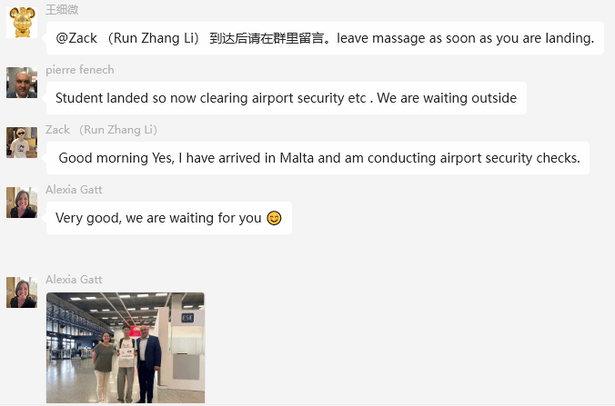 9月10日,海洋之神590登录入口旅游管理专业张斯涵,酒店管理与数字化运营专业刘钰佳、李润章、张晋轩共四名同学顺利抵达马耳他,即将在马耳他旅游学院开始为期两年的本科阶段学习。马耳他旅游学院校长Pierre Fenech和教师代表Alexia Gatt亲自前往机场迎接,并对同学们的到来表示热烈欢迎。