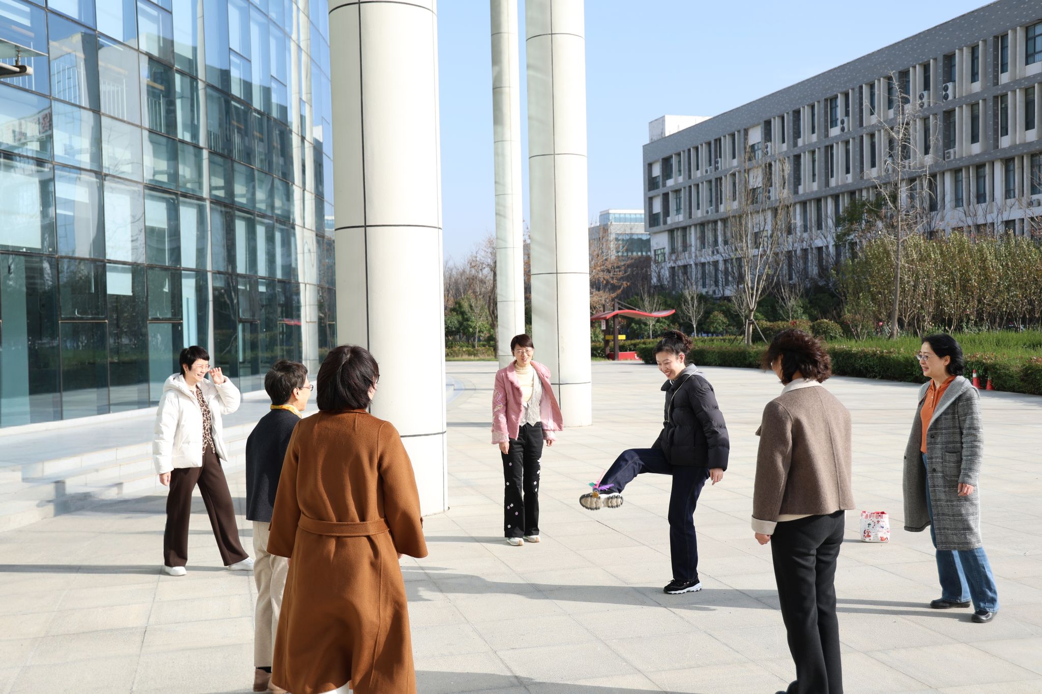 五彩毽球腾空起,欢声笑语满校园。当秋日的暖阳洒满综合教学楼前广场,一场充满趣味与活力的毽球健身活动正在上演。11月26日下午,人文科技学院分工会以“‘毽’康生活,‘踢’出精彩”为主题,精心组织了这场特色文体活动。31名教职工踊跃参与,在起落腾挪间释放活力,在协作互动中凝聚情谊。