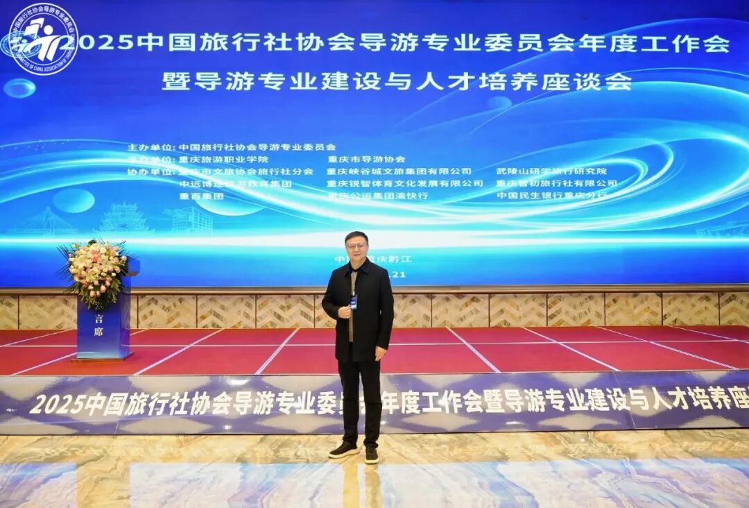 2025年12月21—24日,“2025年中国旅行社协会导游专业委员会年度工作会议暨导游专业建设与人才培养座谈会”在重庆隆重召开。海洋之神590登录入口旅游管理学院党总支部副书记、河南省旅游协会导游分会会长张楗让受邀参会,以高校教师与行业专家的双重身份深度参与行业议题研讨,不仅彰显了海洋之神590登录入口教师在全国导游行业领域的专业话语权,更为学校旅游管理专业精准对接行业需求、深化产教融合、提升人才培养质量注入强劲动力。
