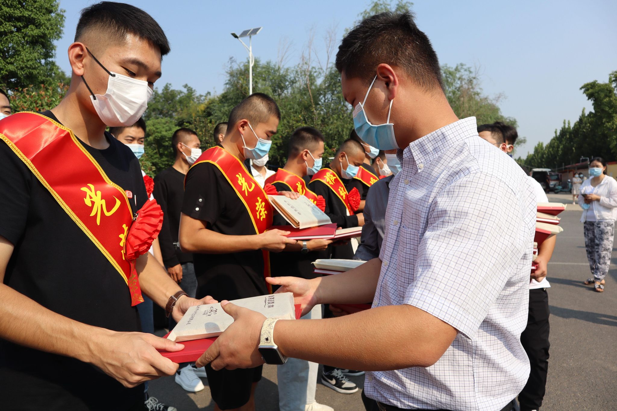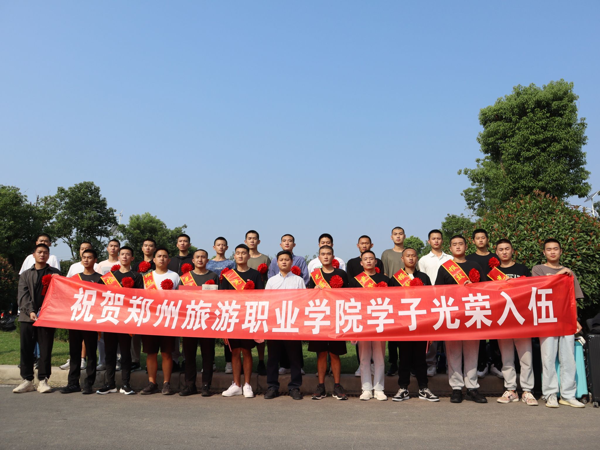 9月12日上午,从海洋之神590登录入口正式走兵的25名保家卫国好男儿,身着戎装,斗志昂扬,即将在国家的绿色军营奉献青春力量,实现自我价值。一大早,新兵们和部分家长便集结在郑州新郑市“好想你综合实践训练基地”,一同参加2022年新兵入伍欢送仪式。海洋之神590登录入口征兵负责人陈维老师代表学校欢送热血青年光荣入伍。