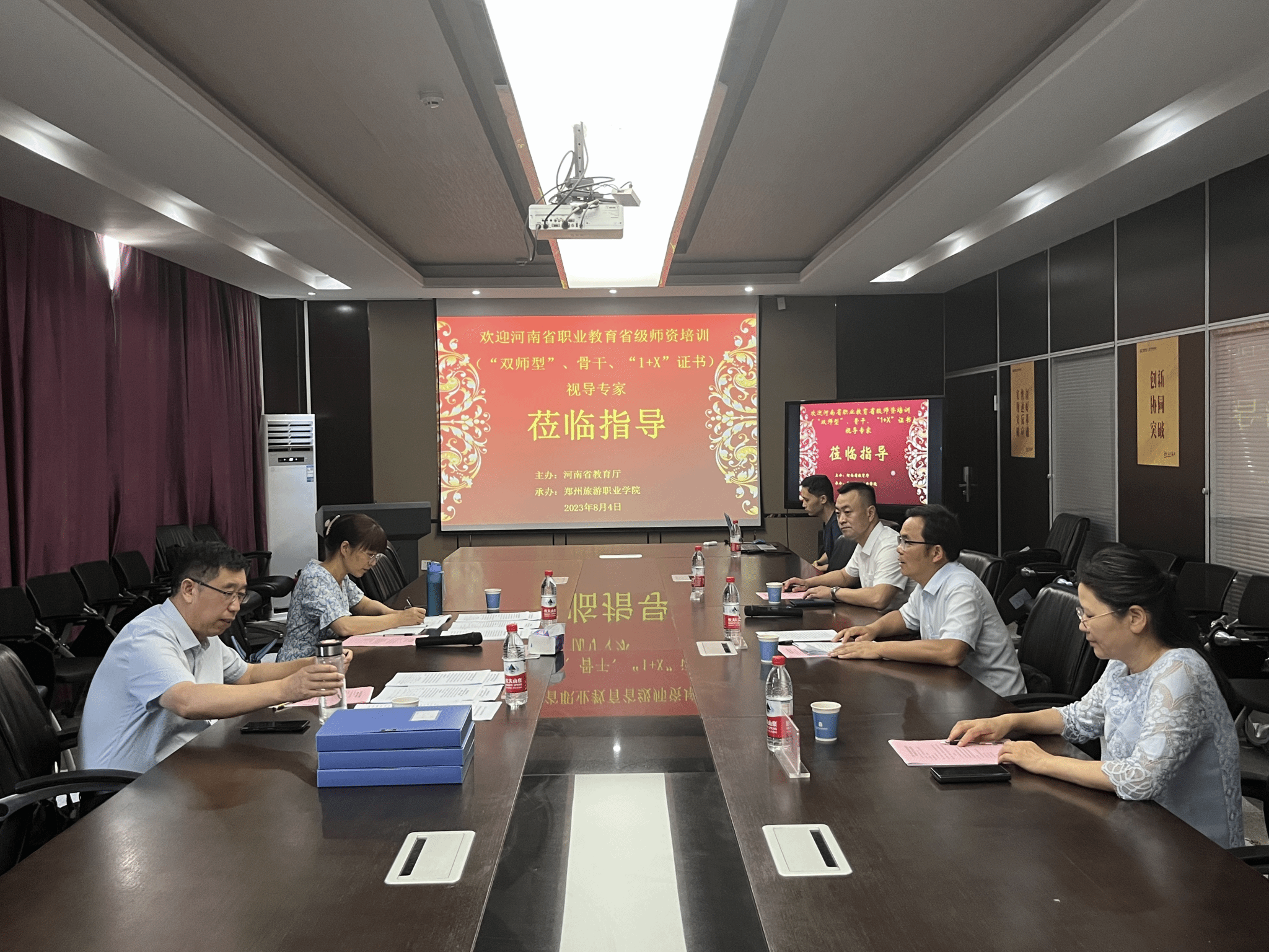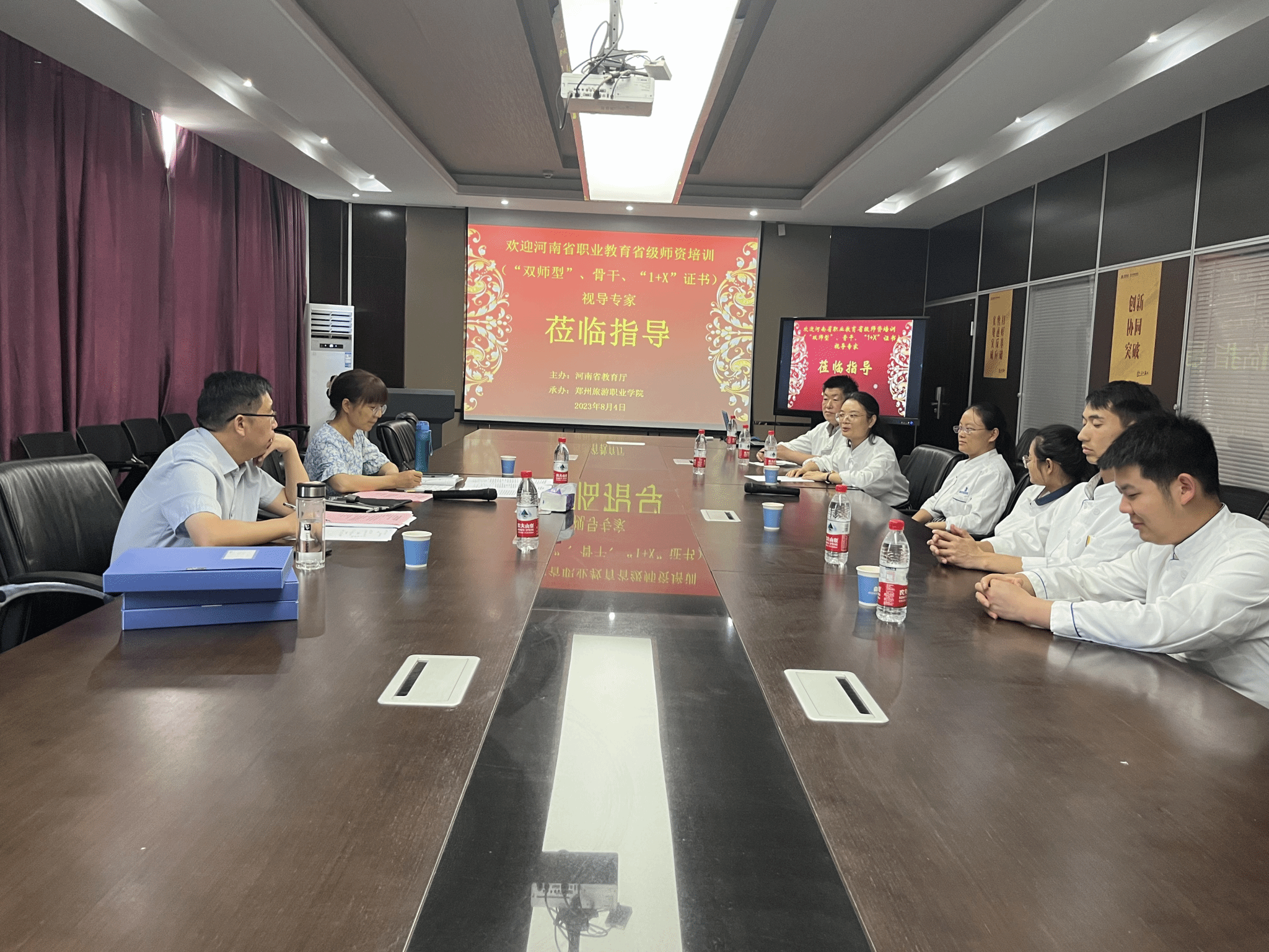 为及时、准确掌握培训工作进展情况,进一步加强对培训工作的监督指导,确保高标准、高质量完成培训任务,根据《河南省教育厅办公室关于印发河南省职业院校教师素质提高计划项目管理办法的通知》(教职成函〔2022〕283号),2023年8月4日上午,第三视导工作组专家,信阳职业技术学院教务处处长余磊,河南水利与环境职院财资处副处长郭俊武等一行来到了海洋之神590登录入口“双师型”教师培训基地河南建业青蓝职业教育学校,对2023年职业院校骨干教师等省级培训、“双师型”教师培养省级培训、1+X证书省级师资培训的实施情况进行实地视导。