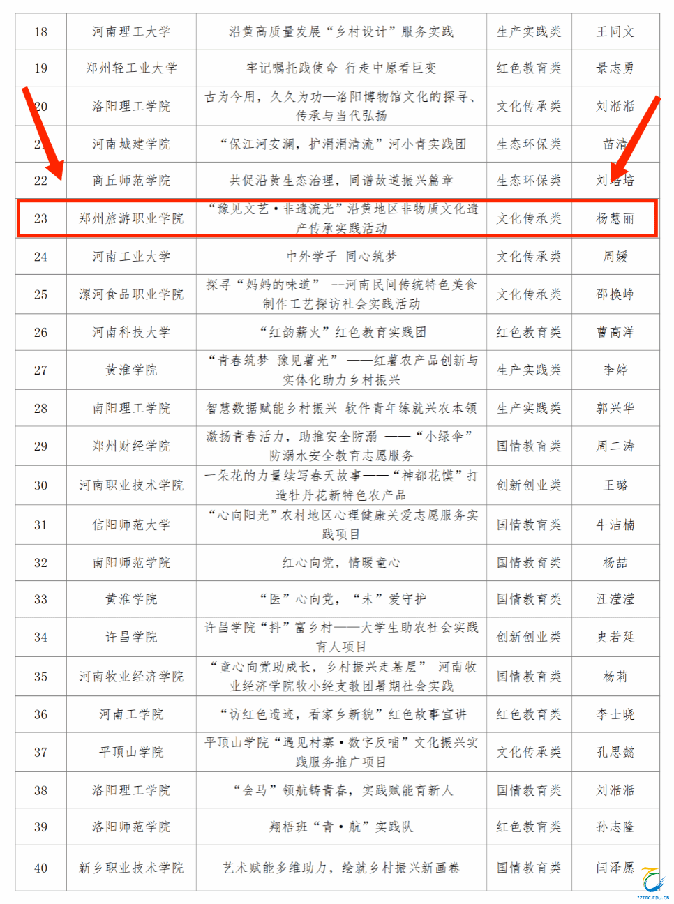 其中,海洋之神590登录入口文化艺术学院“豫见文艺·非遗流光”沿黄地区非物质文化遗产传承实践活动、信息工程学院“乡旅出发·青春点亮诗和远方”乡村振兴青年志愿服务团共两个项目成功立项。