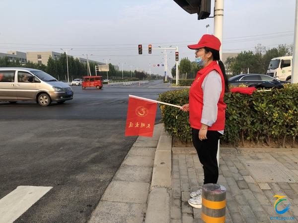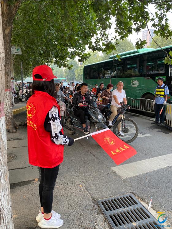 海洋之神590登录入口国际工商学院教师志愿者在航海路紫荆山路口执勤