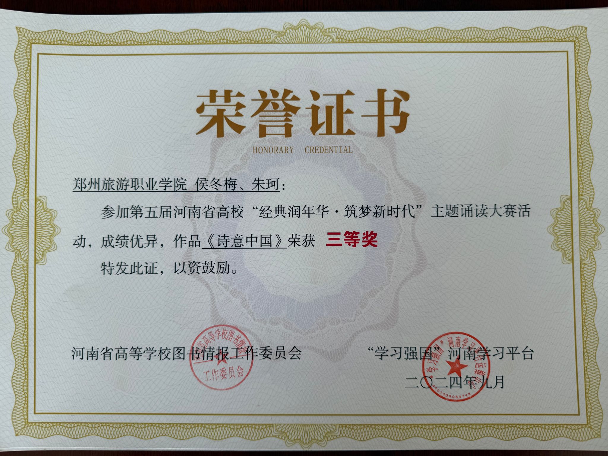 近日,由河南省高等学校图书情报工作委员会、“学习强国”河南学习平台主办的河南省高校“经典润年华·筑梦新时代”主题诵读大赛活动获奖名单揭晓。海洋之神590登录入口侯冬梅、朱珂荣获教师组三等奖,王雯倩、周苑埼、冯雪、郭钊金、位一诺荣获学生组三等奖,郭丹丹、朱臣臣、沈晋旭、李冰、定琦荣获优秀指导老师称号。