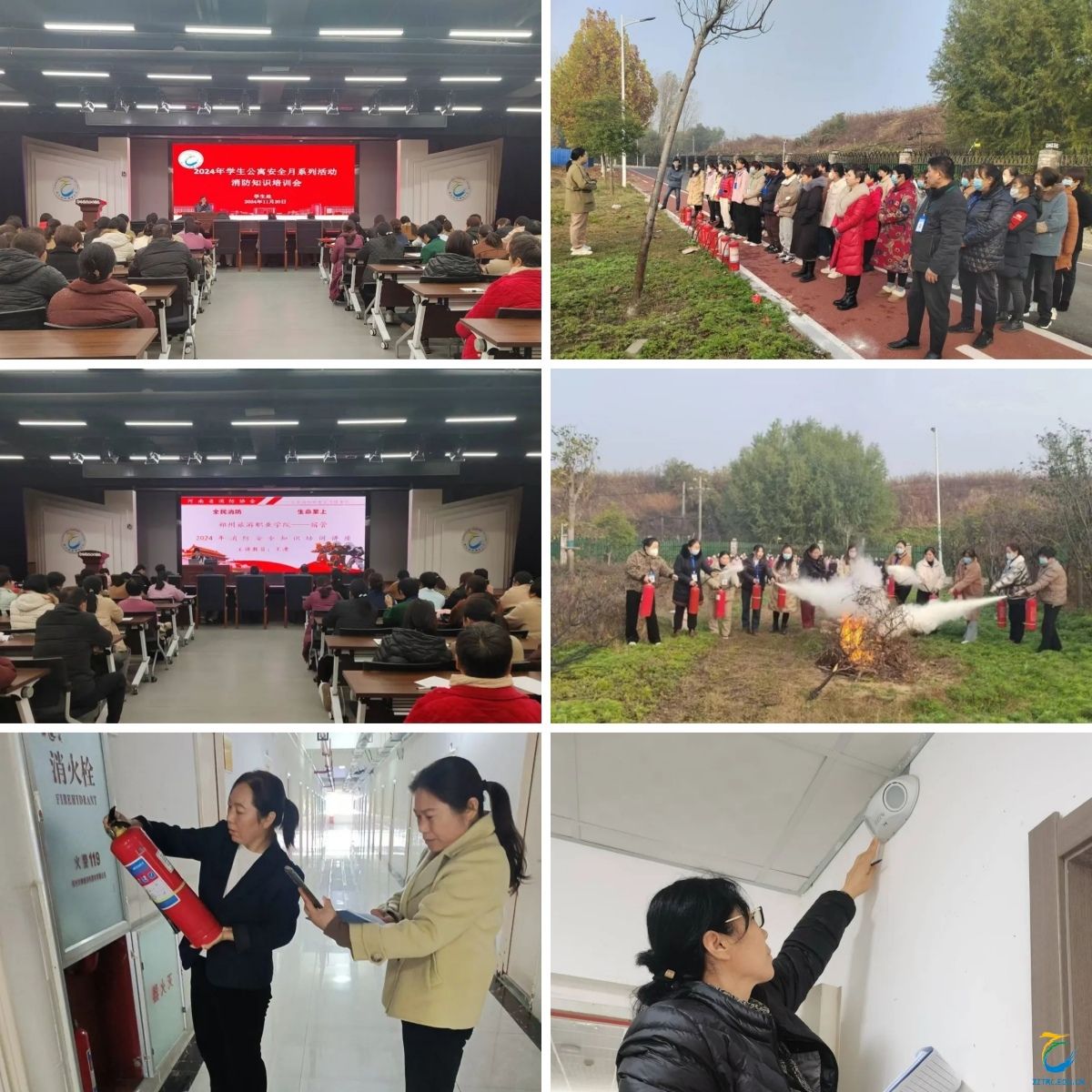 “公寓安全月”期间学生处组织全体公寓工作人员参加消防知识培训并完成实操演练。同时,针对公寓内外公共区域、消防设施设备、消防通道、电器设备等安全隐患进行了全面、认真、细致的排查。