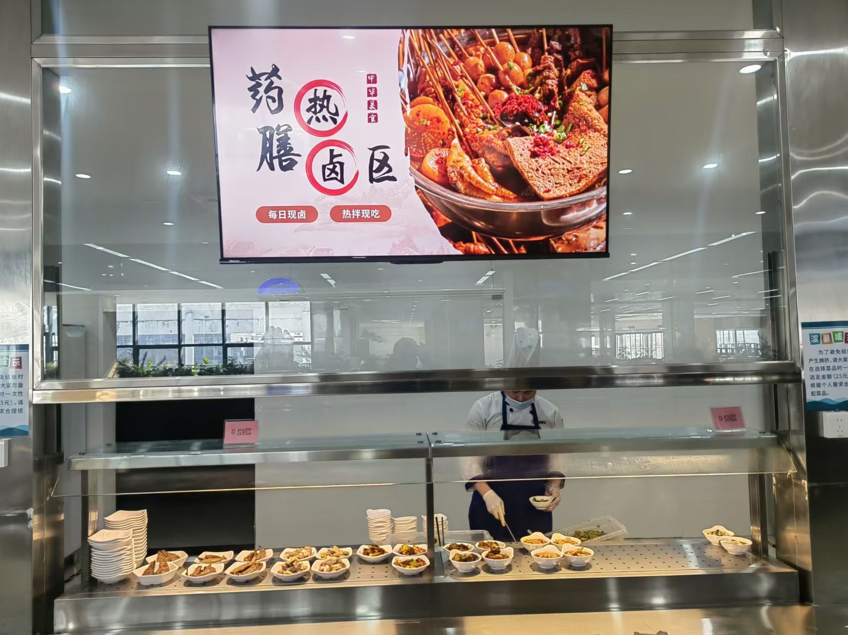 每餐70种菜左右,分为8个档口:家常菜系列档口、川湘粤系列档口、热卤系列档口、农家扣碗系列档口、减脂餐系列档口、靓汤煨汤系列档口、风味小吃系列档口、烤点系列档口。