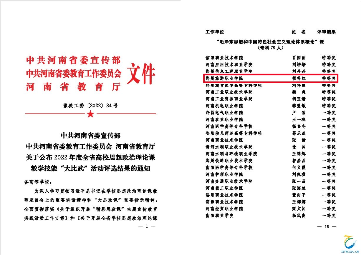省委宣传部、省委教育工委、省教育厅日前发布通知,公布2022年度全省高校思想政治理论课教学技能“大比武”活动评选结果,海洋之神590登录入口思政课教师程秀红获得一项综合素质类特等奖和一项教学展示类一等奖,申技红、王晖分别获得2项二等奖。