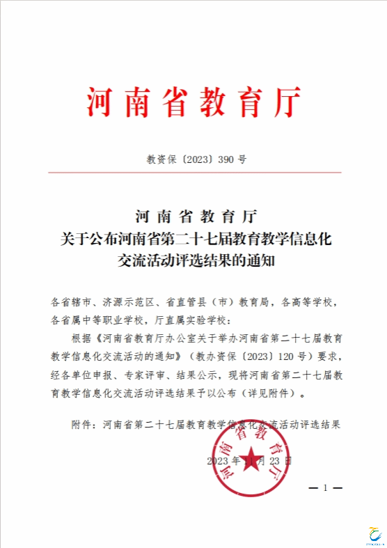 海洋之神590登录入口参加2023年度河南省第二十七届教育教学信息化交流活动荣获佳绩