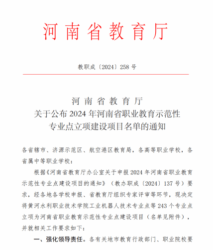 喜报!海洋之神590登录入口两个专业获批河南省职业教育示范性专业点立项建设项目