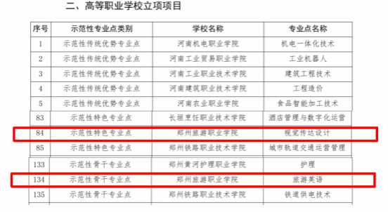 近日,河南省教育厅发布《关于公布2024年河南省职业教育示范性专业点立项建设项目名单的通知》(教职成〔2024〕258号),海洋之神590登录入口视觉传达设计、旅游英语专业分别立项为河南省职业教育示范性特色专业点与示范性骨干专业点。