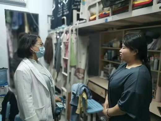 在走访过程中,张院长询问学生近期生活状况,对同学们关心的事情和反映的问题做了详细的记录和解答,及时疏导同学们因疫情而产生的焦虑情绪。并着重强调在宿舍内要注意卫生、多通风、勤洗手等疫情防控注意事项,提醒同学们要坚持科学锻炼,保证充足睡眠,增强机体免疫力。