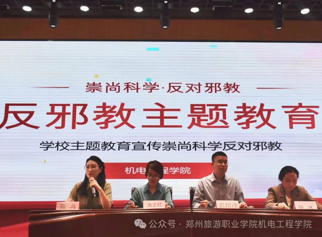 为助力同学们树立正确价值观,强化对邪教的防范意识,机电工程学院于 2024 年 9 月 27 日下午在学校后勤楼二楼报告厅举办“崇尚科学、反对邪教”教育讲座。此次讲座由学院辅导员陈冉老师主讲,2024 级全体新生参与。