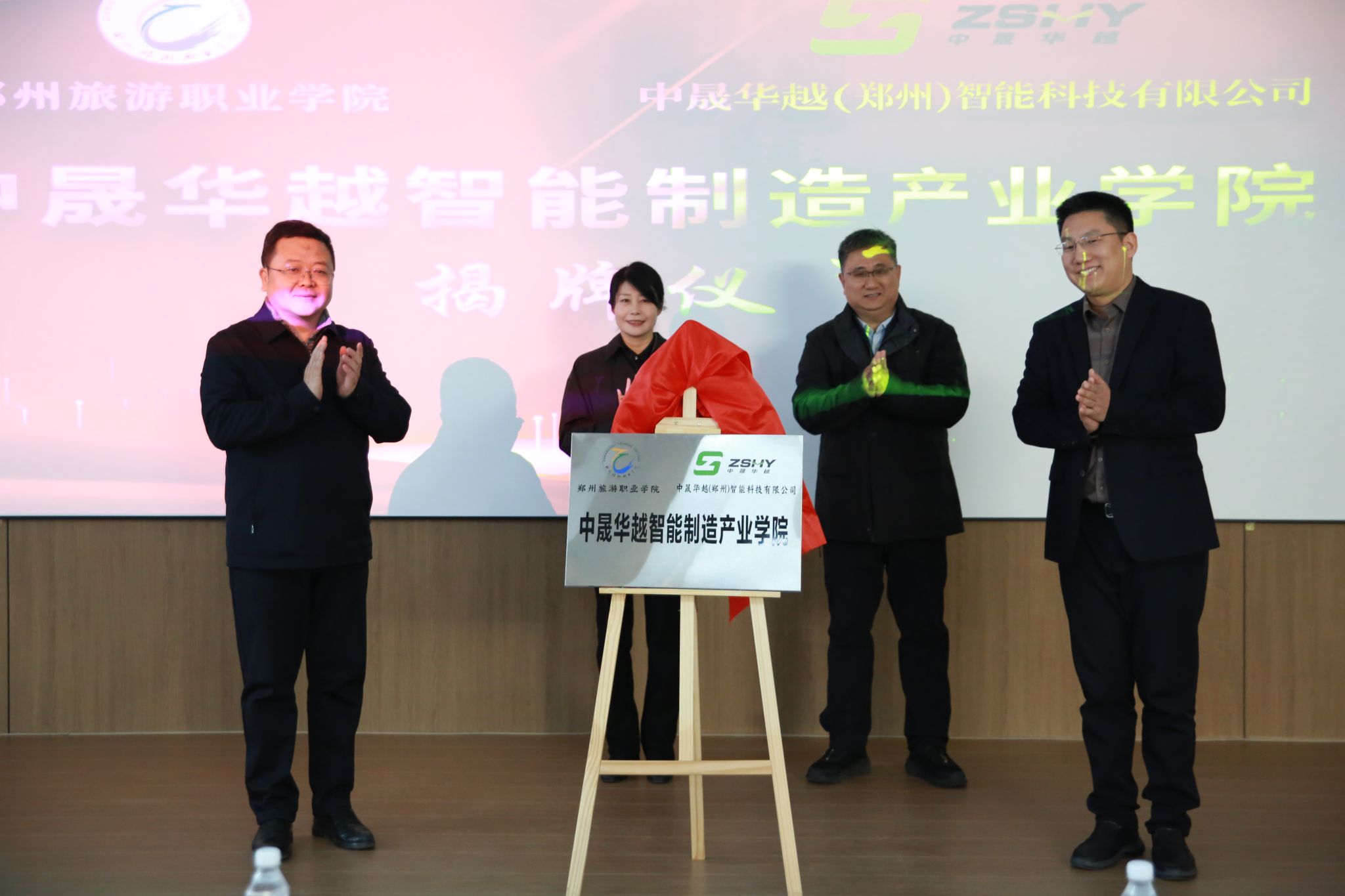 1月9日上午,海洋之神590登录入口与中晟华越(郑州)智能科技有限公司共建智能制造产业学院揭牌仪式在中晟华越(郑州)智能科技有限公司隆重举行。校党委书记王艳红、校党委委员、副校长张建军、长葛市经开区企服中心主任马江坡、长葛市人社局就业促进办主任司松建、裕同集团副总裁加金良、中晟华越(郑州)智能科技有限公司总经理李俊伟出席揭牌仪式,海洋之神590登录入口党政办公室、合作发展中心、机电工程学院主要负责同志及师生代表参加揭牌仪式。仪式由中晟华越(郑州)智能科技有限公司供应链经理李光辉主持。
