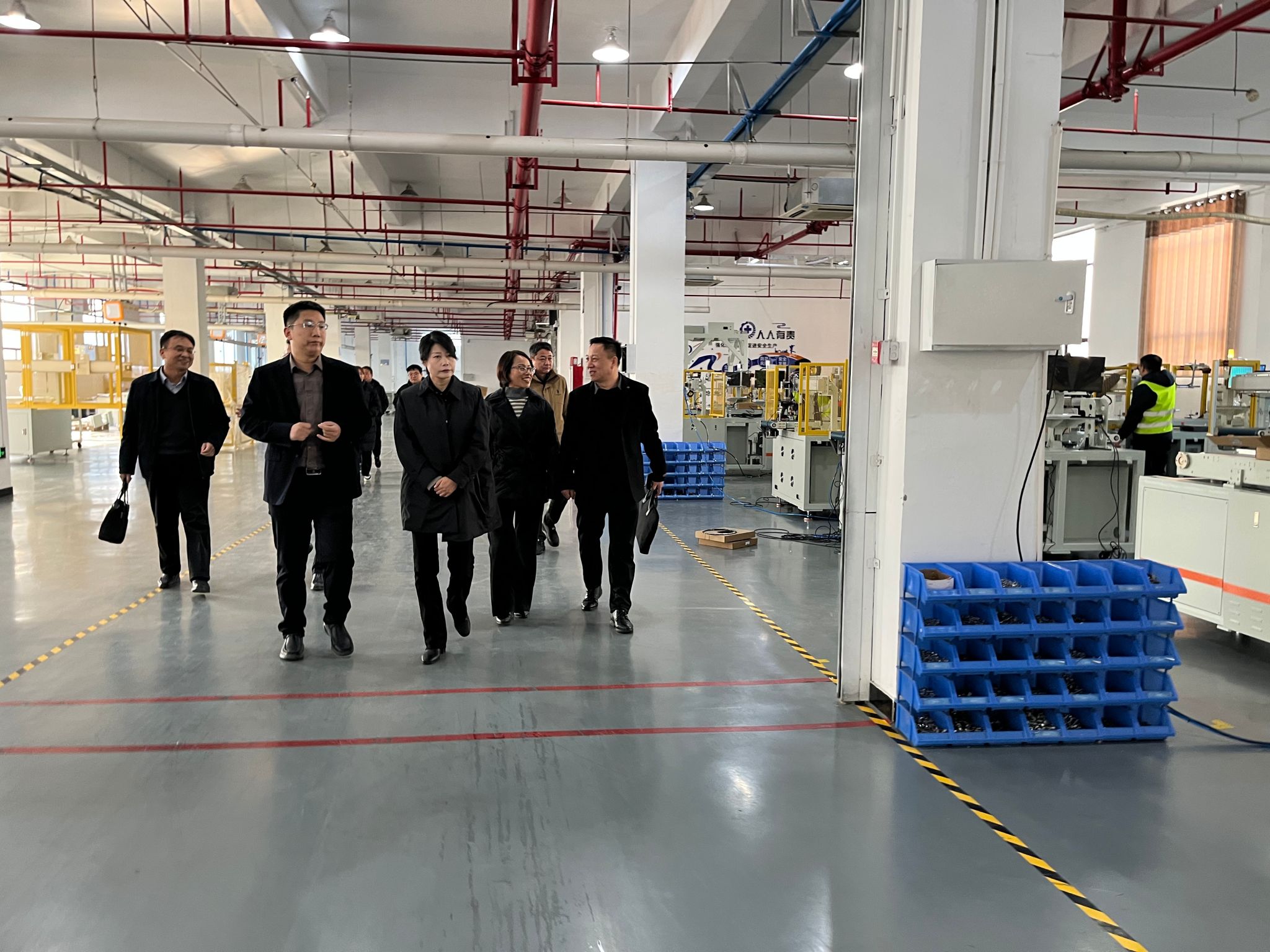 揭牌仪式前,中晟华越(郑州)智能科技有限公司总经理李俊伟带领与会领导参观企业并介绍企业发展情况,阐述产业学院的共建思路,并表示将积极履行企业社会责任,充分挖掘企业优势资源,进一步拓宽校企合作内容。