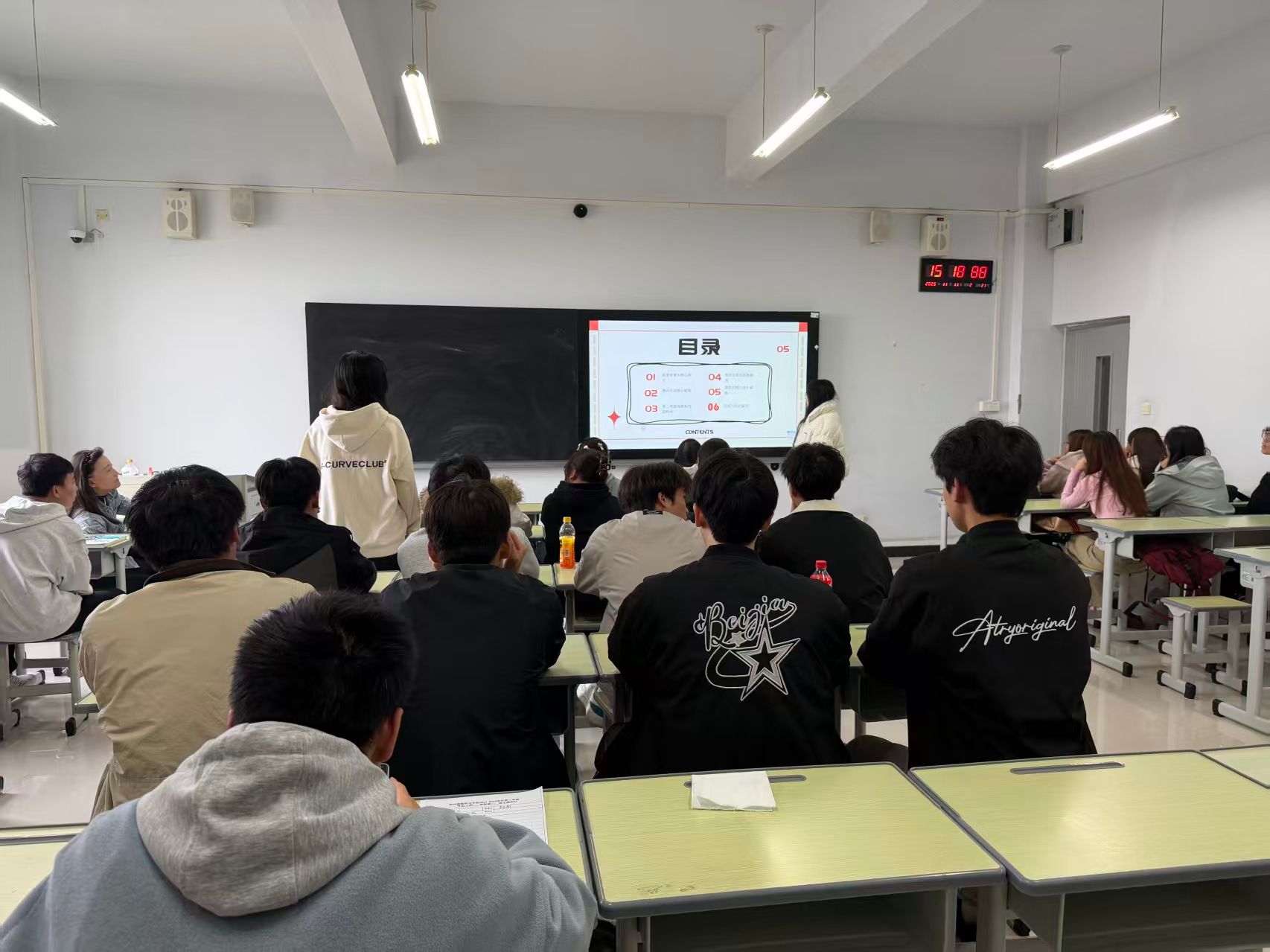 班会伊始,团支书们围绕德育、智育、体育、美育、劳育五大一级指标,结合测评细则,通过PPT演示、条文解读等方式,对各项指标的赋分标准、测评依据及备注说明进行了细致讲解。重点针对同学们普遍关注的党团培训、公益志愿、学科竞赛、技能考证、宿舍评比等加分项,以及违纪处分、卫生不达标等扣分项,结合具体案例进行了深入剖析,让同学们清晰了解“如何加分、如何避坑”。