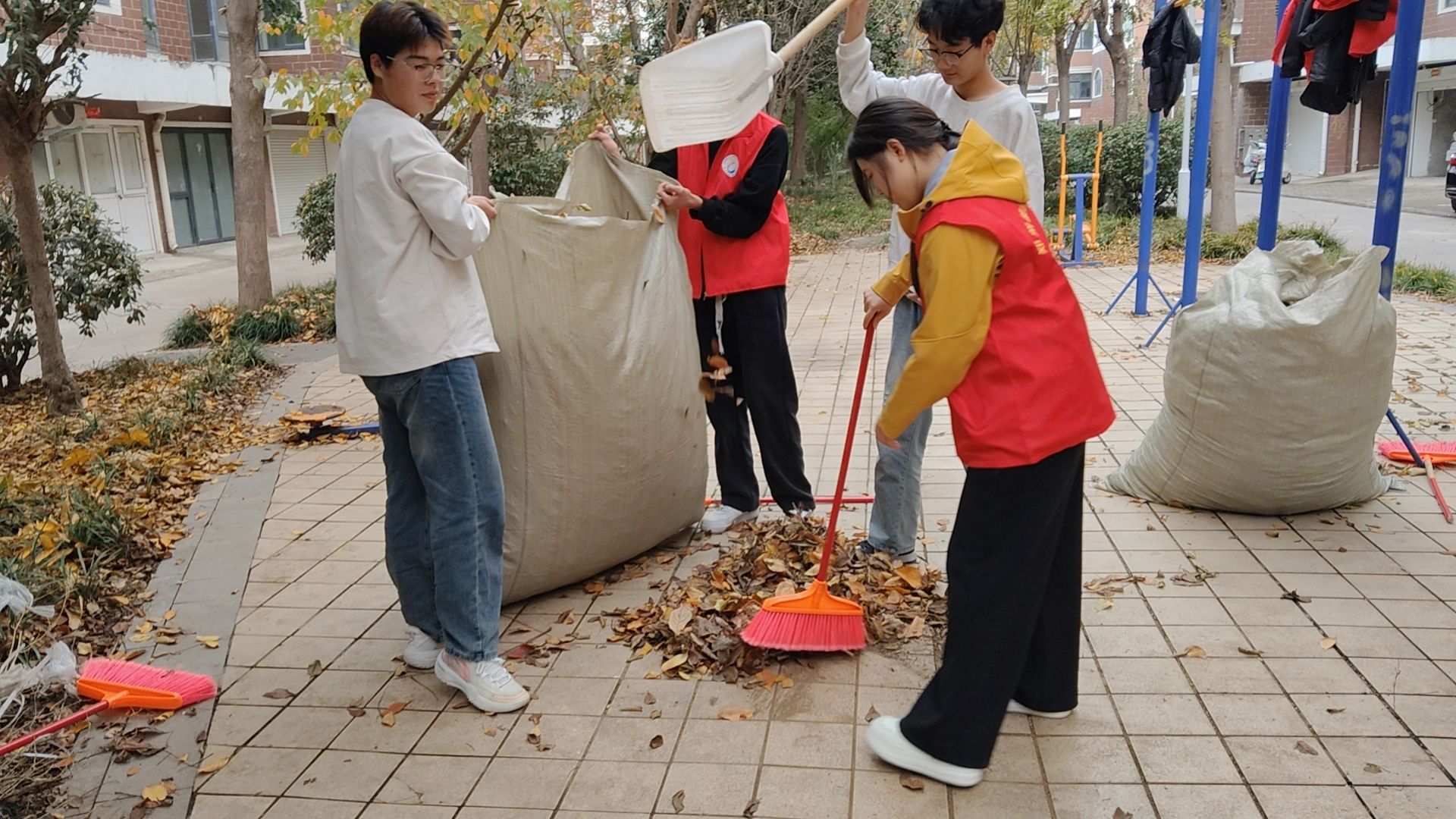 活动现场,志愿者们分成3组有序行动。一组手持扫帚、铁钳等工具,重点清理小区绿化带、道路两侧的落叶、枯枝及生活垃圾。冬季落叶堆积易成为火灾隐患,志愿者们仔细清扫每一处死角,将收集的杂物统一运送至指定回收点;二组负责向小区居民普及防火知识,结合近期火灾案例,讲解落叶堆积的火灾风险,以及家庭用火、用电安全注意事项;三组协助小区物业检查消防设施,查看灭火器是否在有效期内、消防通道是否畅通,及时反馈排查问题。