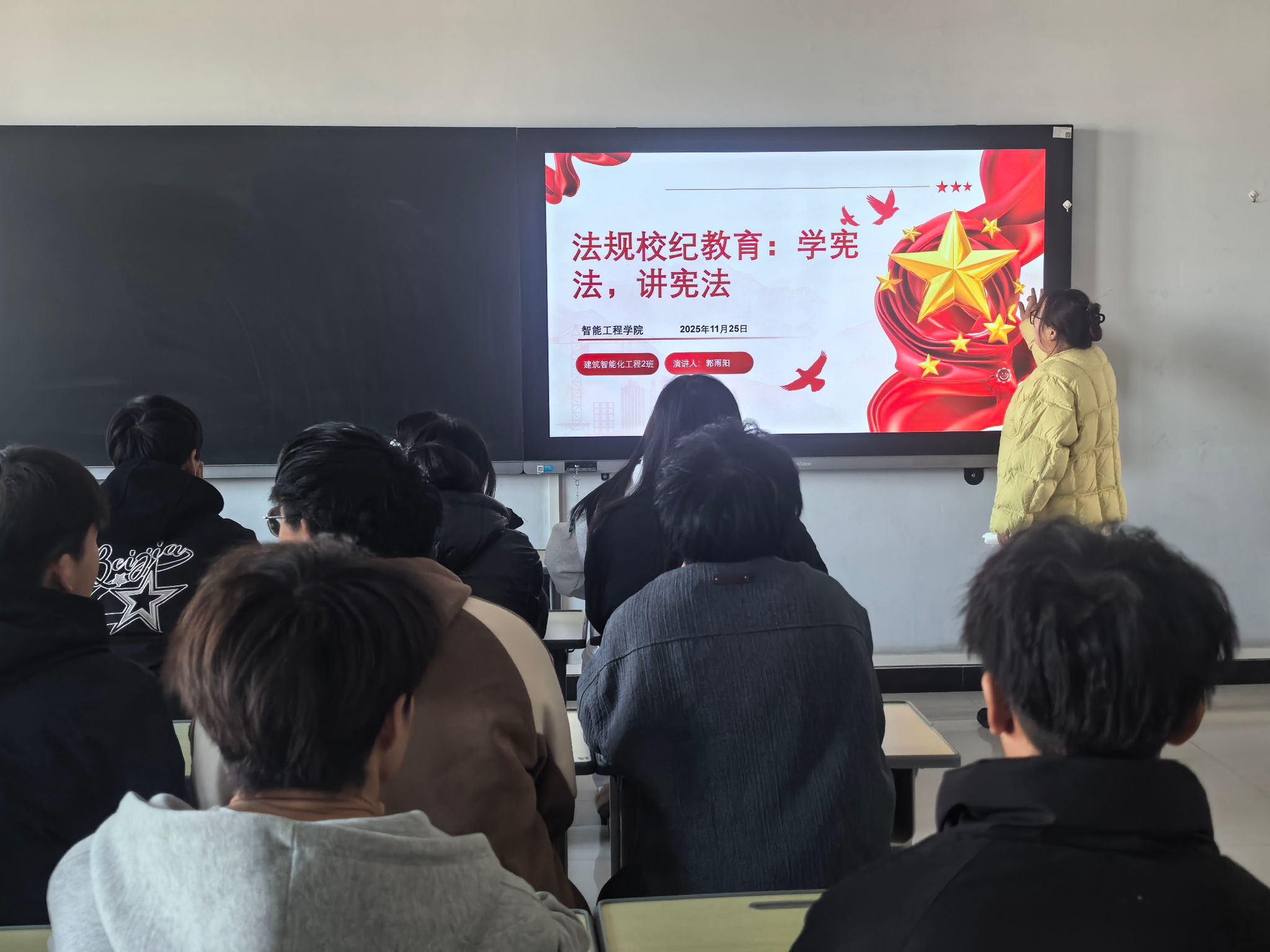 为增强学生宪法意识与纪律观念,11月25日,智能工程学院开展“学宪法、讲宪法”法规校纪教育主题班会。本次班会由各班团支书主持,班主任辅助指导,学生积极参与,共同筑牢法治思想根基。