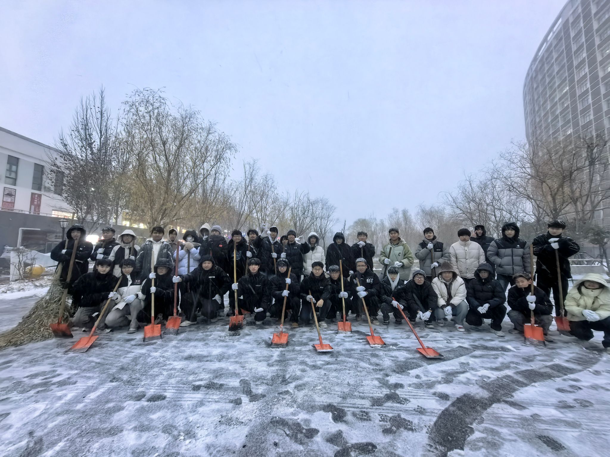 为应对降雪天气,保障校园道路畅通和师生出行安全,12月12日下午,智能工程学院组织学生志愿者开展校园扫雪志愿服务活动。活动在学院党总支书记杨卓、副书记张凯的带领下进行,全体辅导员共同参与,与同学们并肩奋战。