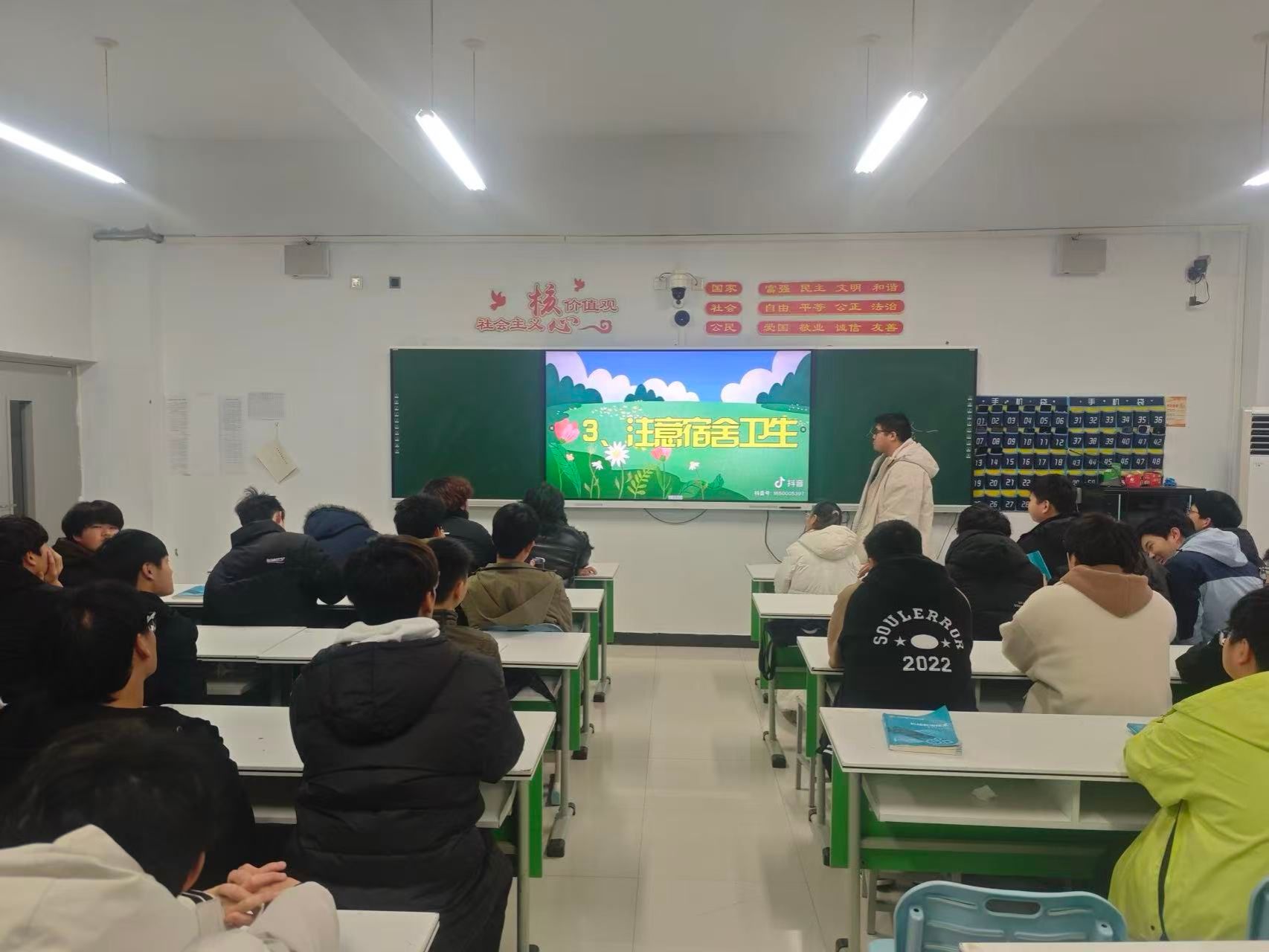 班会围绕“文明离校”与“寒假安全”两大主题展开,团支书结合典型安全案例,讲解离校前宿舍水电关闭、物品整理、卫生清扫等注意事项,倡导大家有序办理离校手续。班主任则重点强调寒假期间交通安全、谨防电信诈骗、消防安全等要点,提醒同学们远离危险行为,合理规划假期生活。